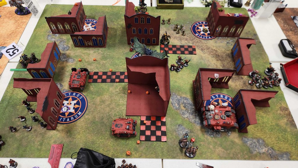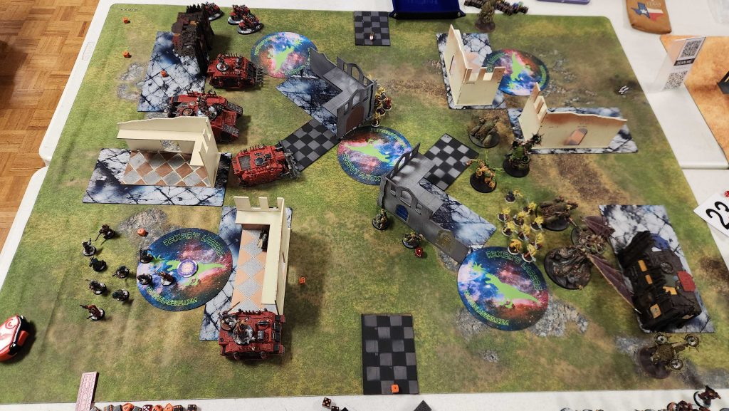 One more day of games! I wanted to start 3-0 but that wasn't particularly realistic given the kind of army I was bringing. There was a chance I could skill my way to 3-0 but not against the first two opponents I drew. Today I just want to finish strong and try and end up 4-1 and have a shot at Best Overall (this won't be possible given how scoring is done but I also just always want to try and end up x-1).
