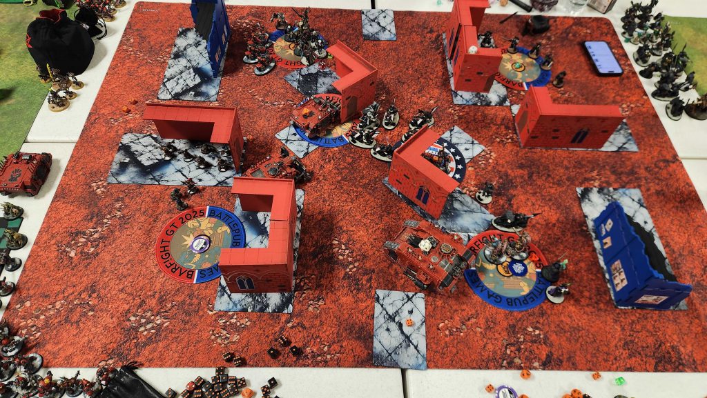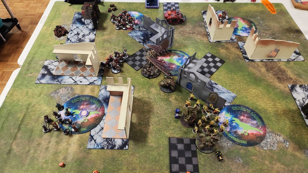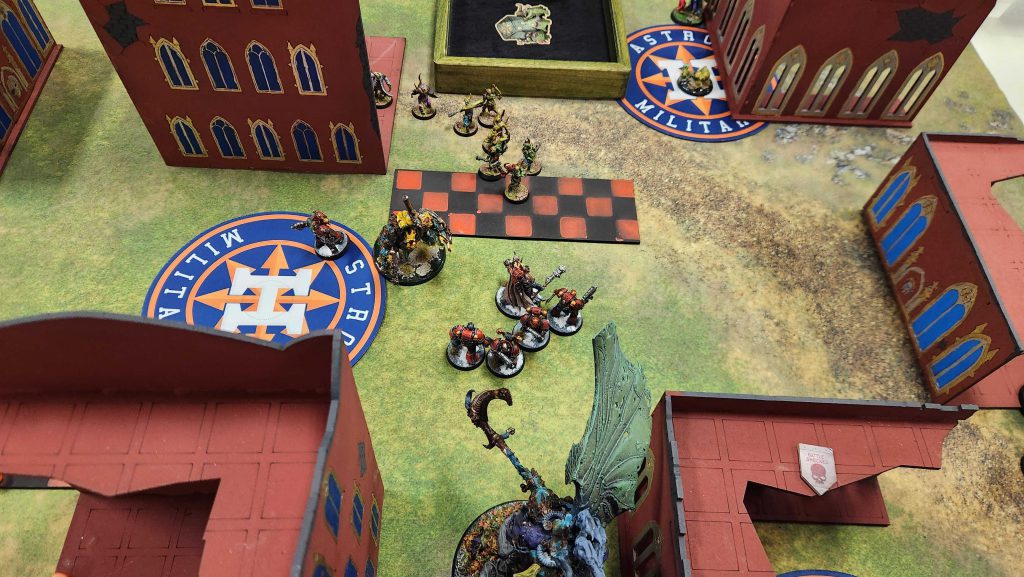With the Deathshroud gone, Mortarion is the big threat here and I'm able to handle him mostly by using a mix of Lethal Hits shooting at +1 AP with the Sorcerer, Grenades, and having units surge into him when he shoots in order to prevent him from charging anything and getting off real damage. Morty eventually goes down and the Daemon Prince follows as Huron and his unit sweep across mid-table.