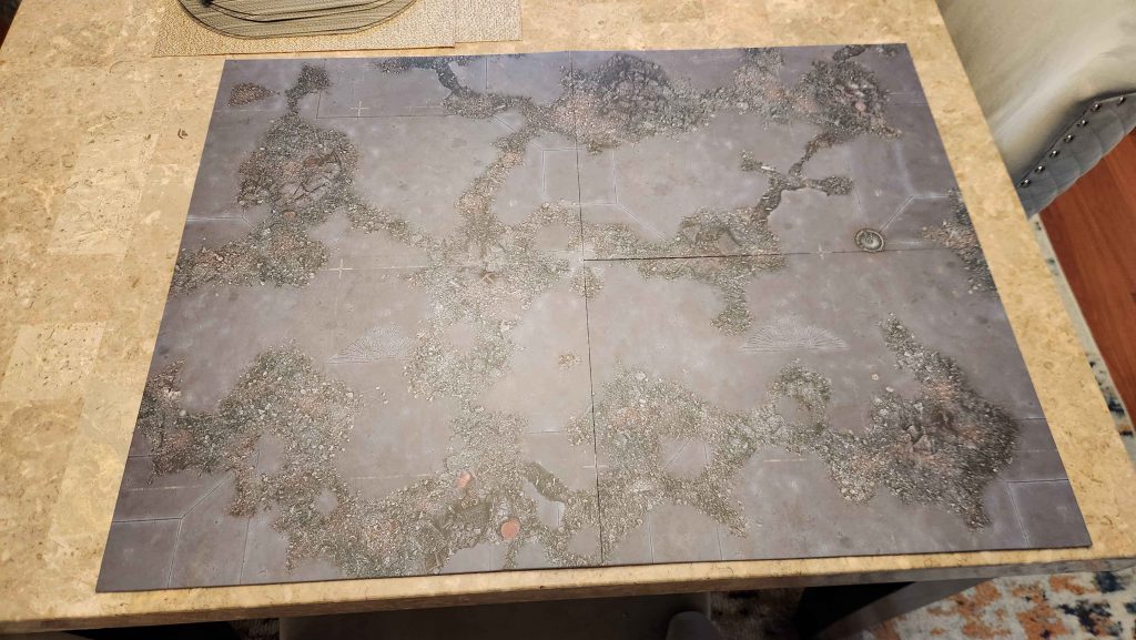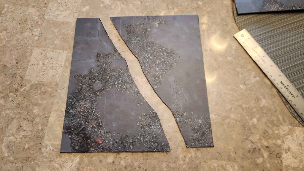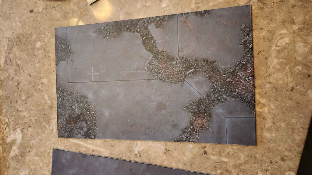 I decided to go ahead and start working on my own set. My local GW store made terrain mats by cutting apart folding 40k boards; I think this is a great idea and I have so many kill team boards lying around that it made sense to do the same.