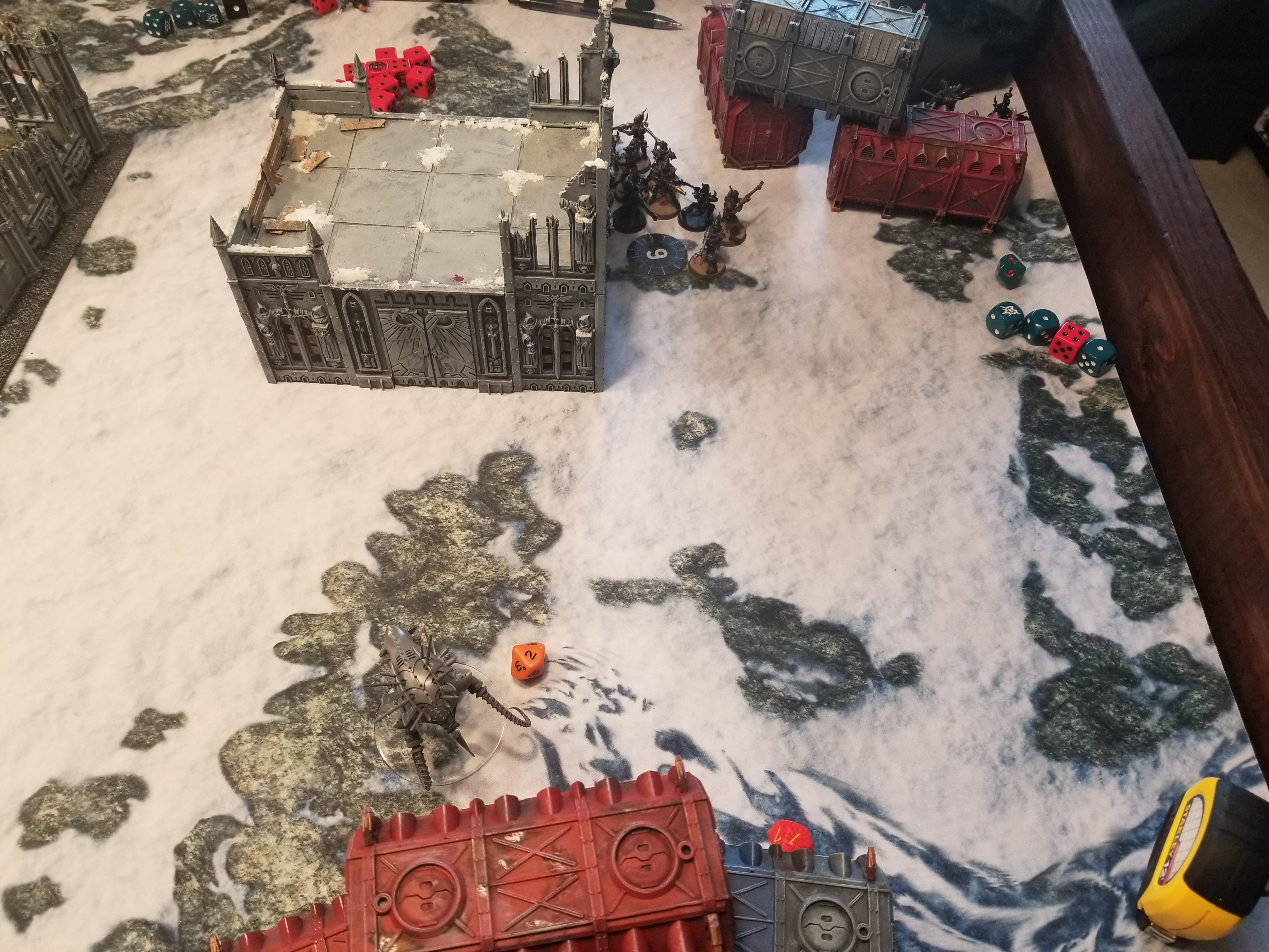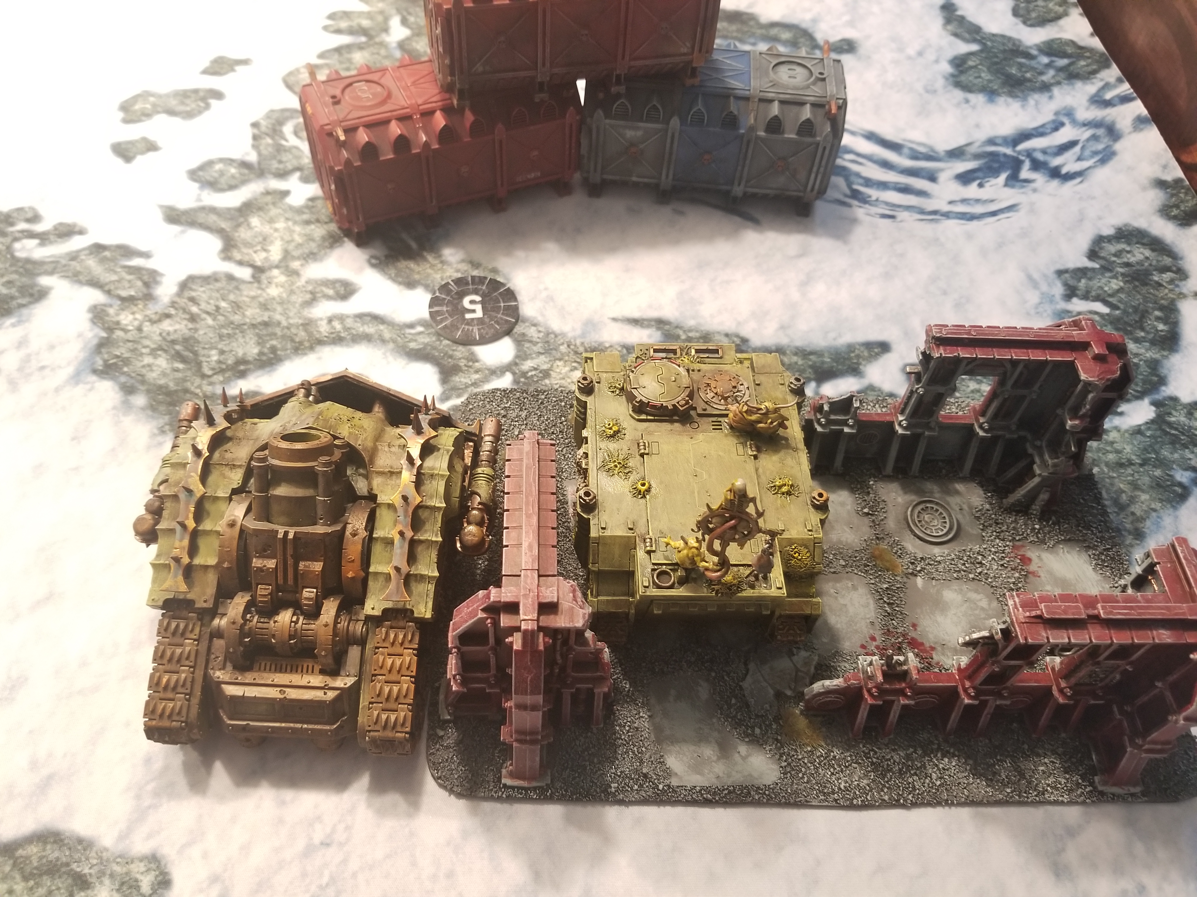 Difficult Terrain - to hid my PBC and Rhino. The PBC will keep a back tread on that terrain base all game in order to maintain a -1 to be hit. This is something that will really boost its longevity against a barrage of dark lances and shredders.