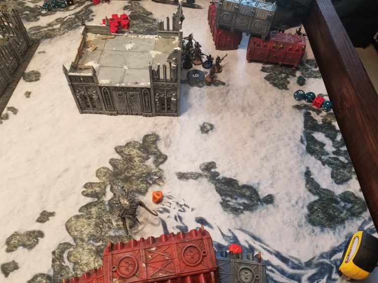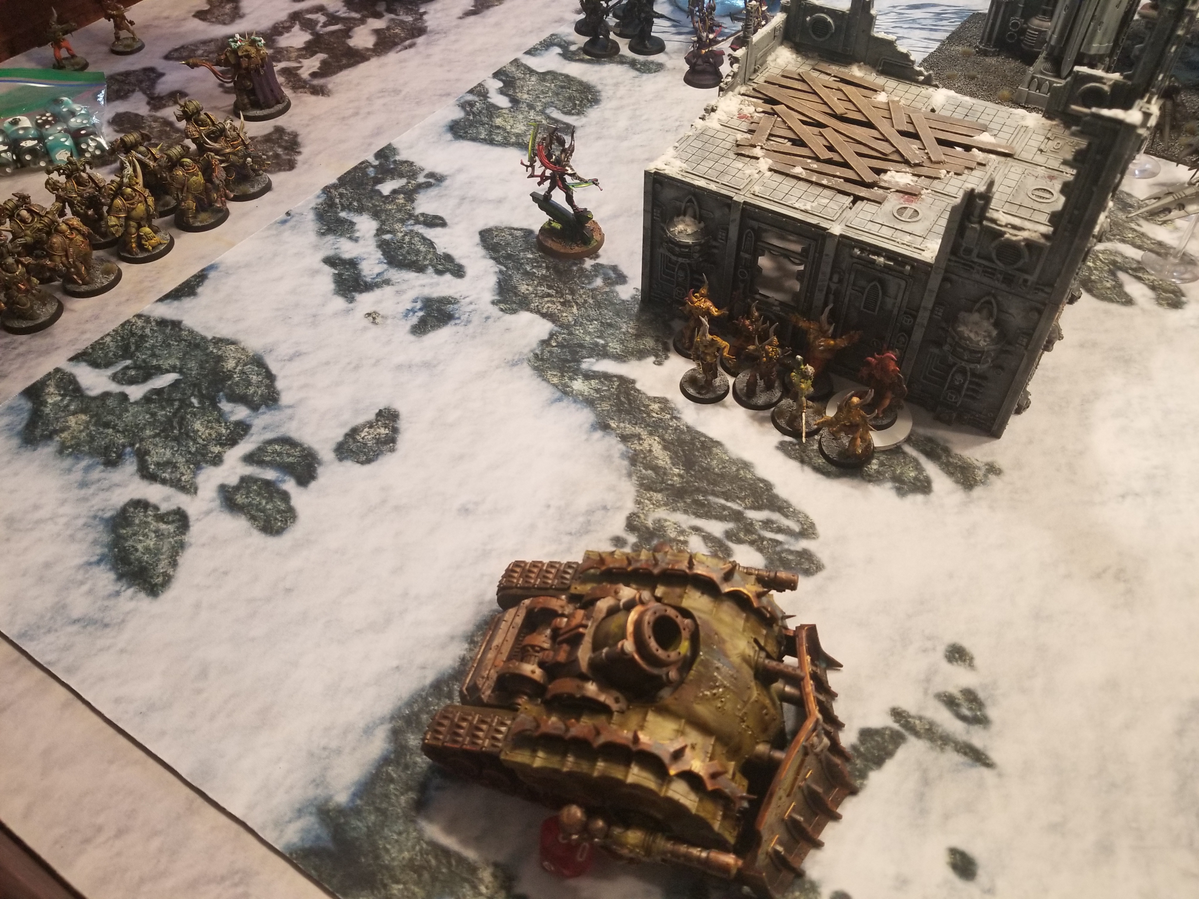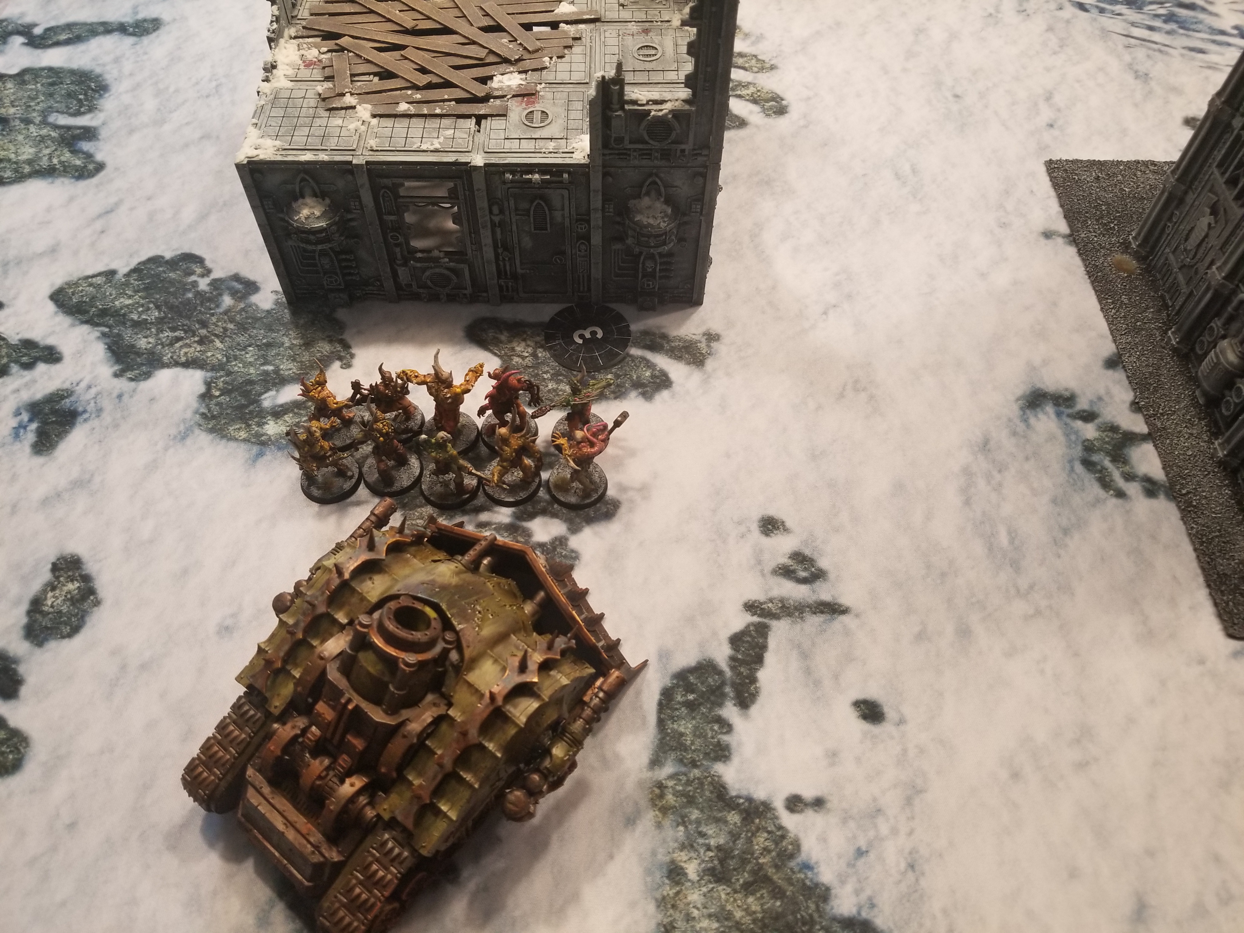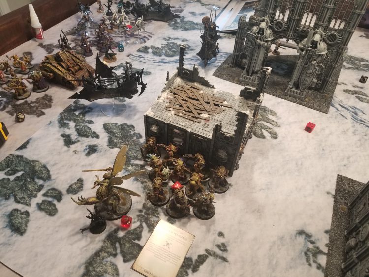 Then on the left side I've got some poxwalkers to spread the sickness and potentially screen my other PBC. This PBC is a bit exposed so I'm not sure how well I'll be able to do that but this is the best I'm going to be able to do with this deployment and putting an attractive unit on that side of the table at least gives me a bit of a speed bump that I can respond to if Swiftblade drops something on my flank.