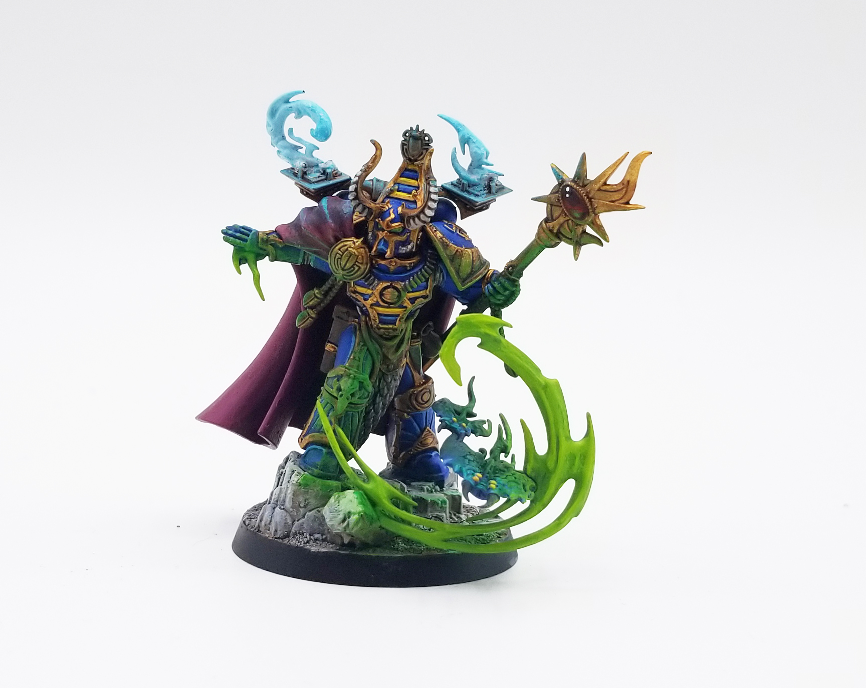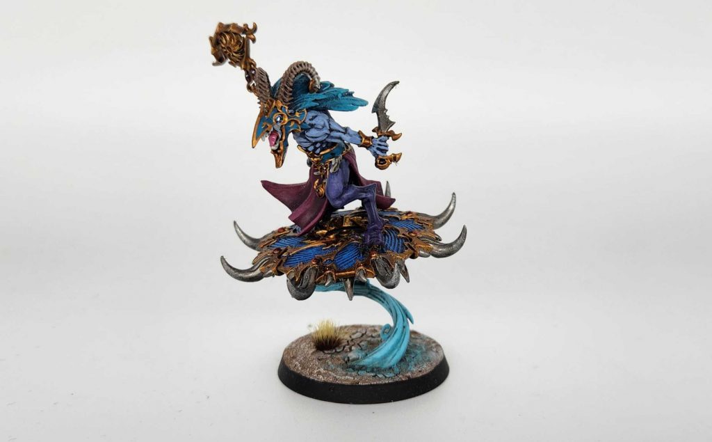 Arch-Sorcerer of Tzeentch, which gives him +1 to his Psychic tests for rituals, and he's one of only two models (the other being Magnus) that gets a flat bonus to casts. That's pretty handy, and does a lot to shift ritual math upward in your favor, but isn't so big a bonus on its own that you'll want to take him.