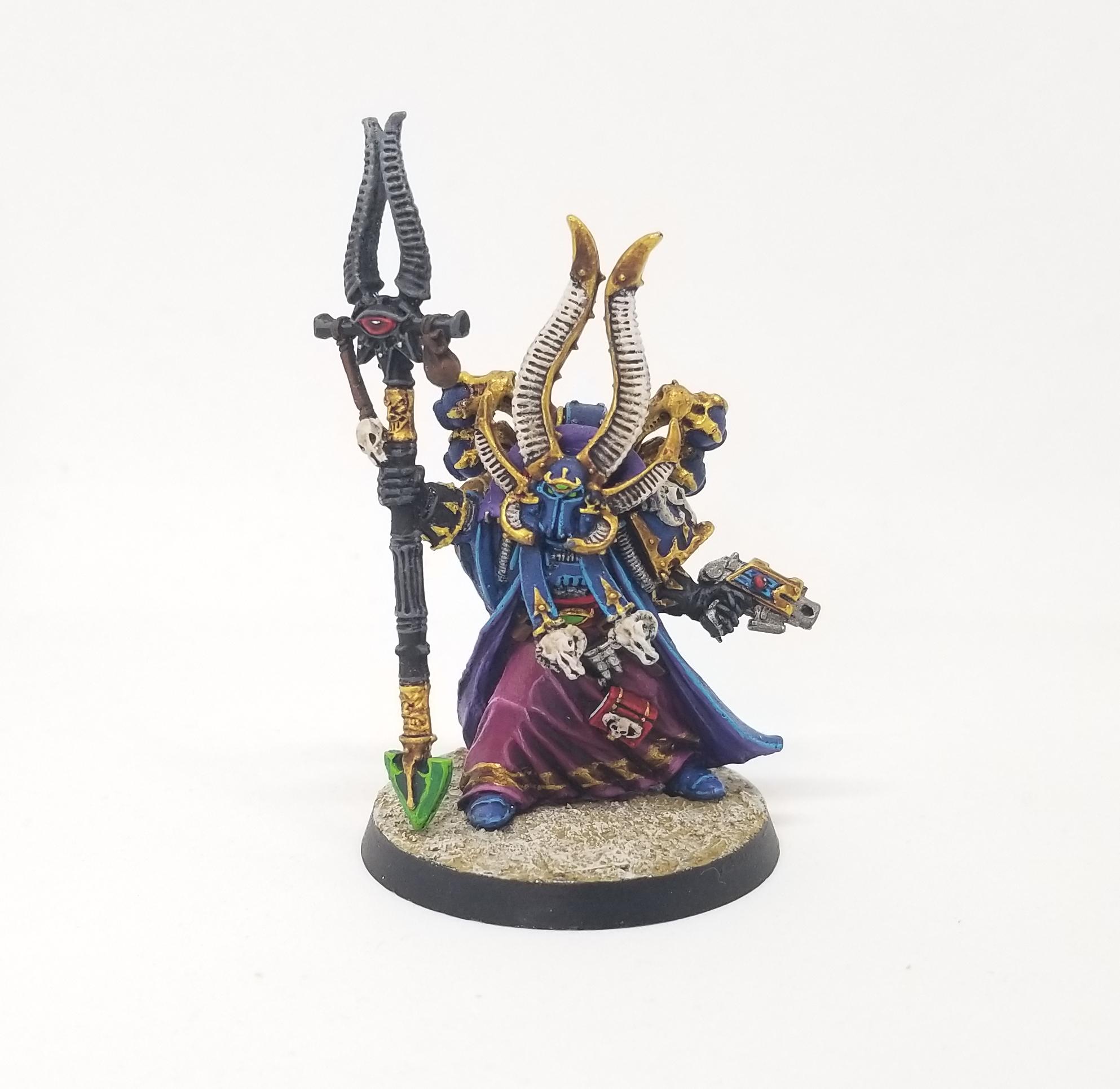 Inquisitor [4 PL, -1CP, 64pts]: 1) Terrify, 6) Castigation, Blackshroud, Condemnor Boltgun [1pts], Force stave [8pts], Frag & Krak grenades, Malleus - Psychic Mastery, Ordo Malleus, Stratagem: Inquisitorial Mandate [-1CP]