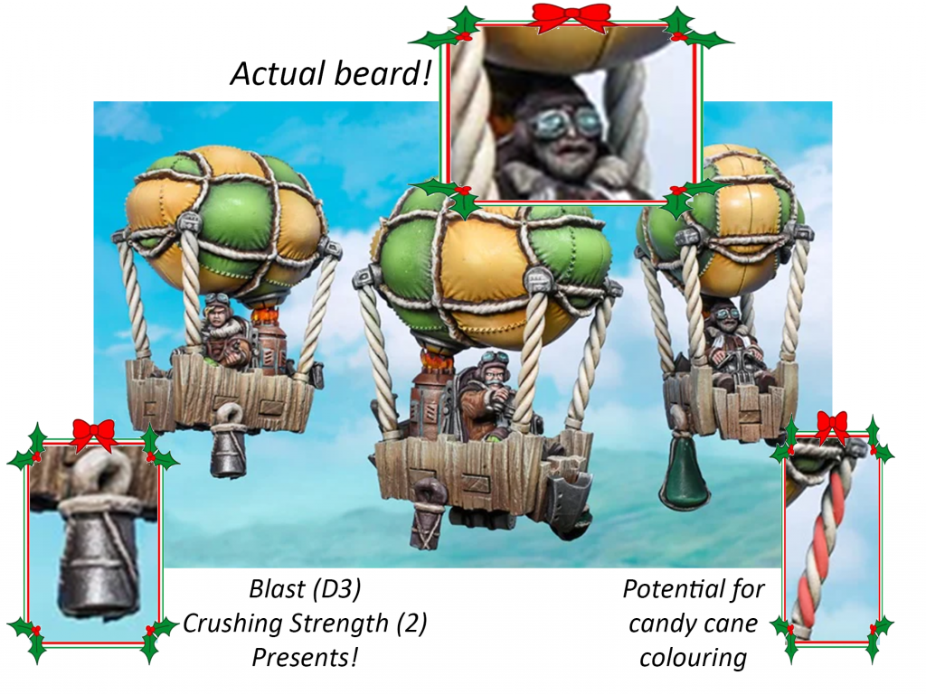 The Halflings uphold many Christmas values throughout the year. It is well known they have more feasts per week than any other peoples in Pannithor. They also have a production line of ‘toys’ made by smaller folk (themselves). Of all the Halflings, the Aeronauts are closest in resemblance to Mr Claus.