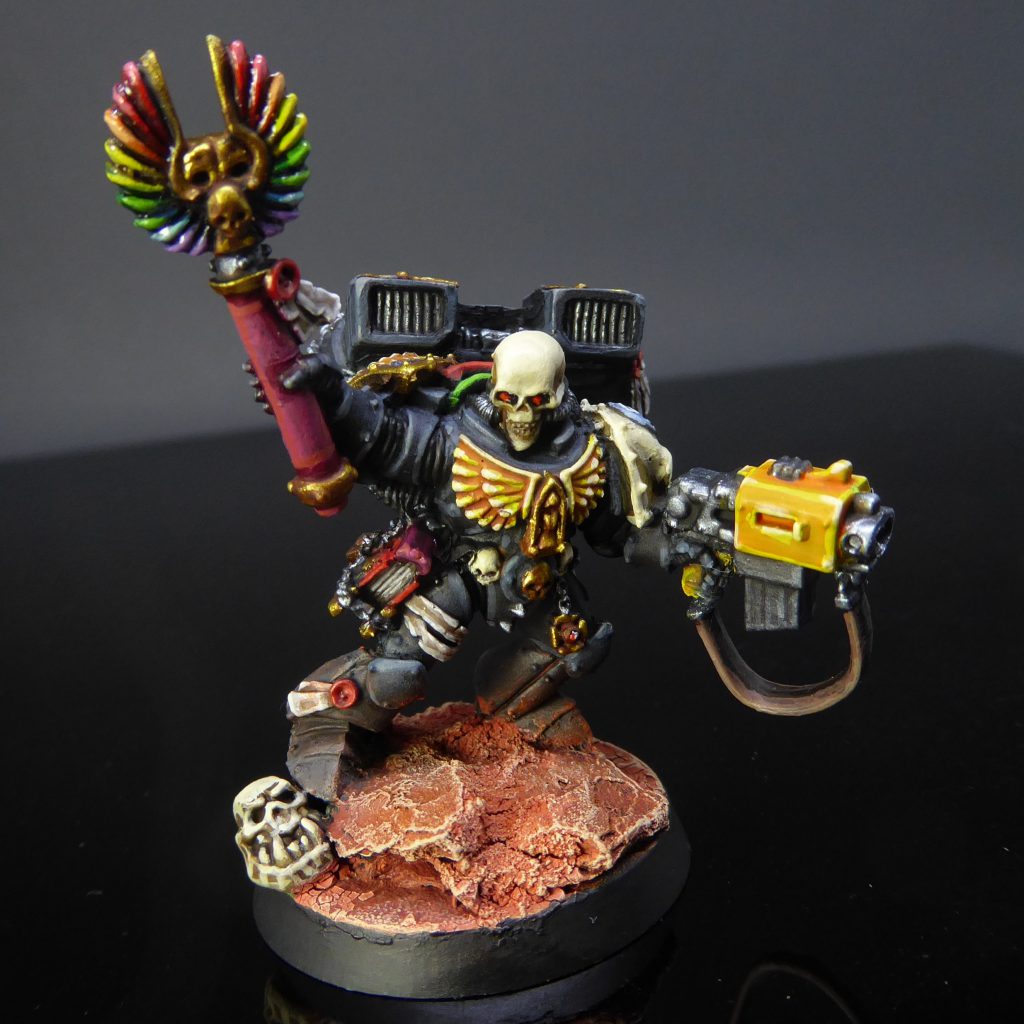 Librarian in Phobos Armour [5 PL, 101pts]: 1) Blessing of the Machine God, 5) Reforge, Camo cloak [3pts], Force sword [8pts], Warlord
