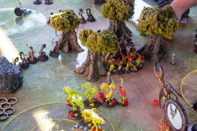 I won priority turn two and took the double, continuing my sweeping manoeuvre to completely clear the right hand side of any threats while solidifying my position in the middle. His Mega Boss was having the time of his life killing chain rasps in the middle, but the rest of the army was dying around him as Mannfred, the Harridans and the Spirit Hosts swept through his flanks. Turn 4 Mannfred charged an incidental unit, then in the combat phase teleported onto the left flank to take control of all three points as only a Warchanter was holding it, putting me firmly in the lead as my opponent was running out of units not tied up in combat to deal with Mannfred.