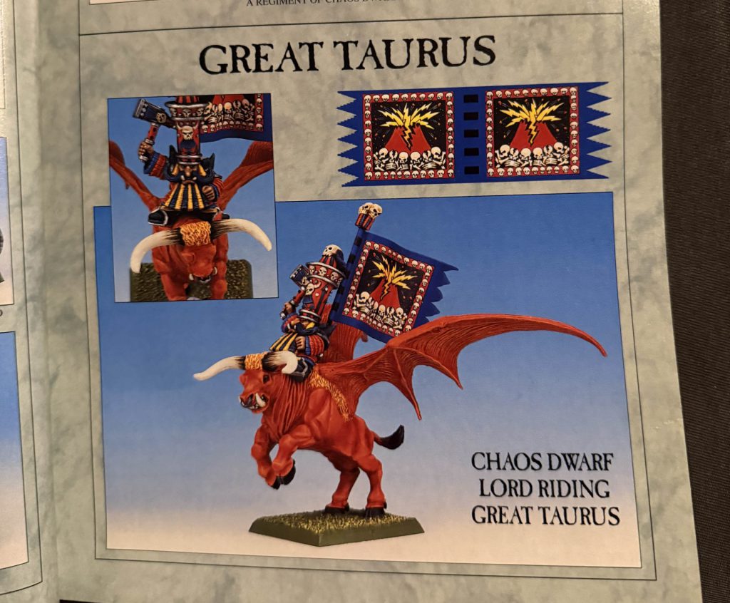 There are two notable monsters employed by the Chaos Dwarfs: The Great Taurus and the Lammasu. The Great Taurus is a monstrous bull with dragon-like wings that are stabled in great pens beneath the Temple of Hashut. The Lammasu are chimeras believed to be rare mutations of the Great Taurus and are magical creatures able to breathe the very power of magic itself. They’re the favored mount of Chaos Dwarf Sorcerers.