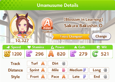 10% in Wit, meaning that her Speed training is going to be consistently easier and better than other Trainees; Taiki Shuttle has the same spread, meaning Bakushin has the same growth rates as an SSR unit. Baksuhin Bakushin indeed.