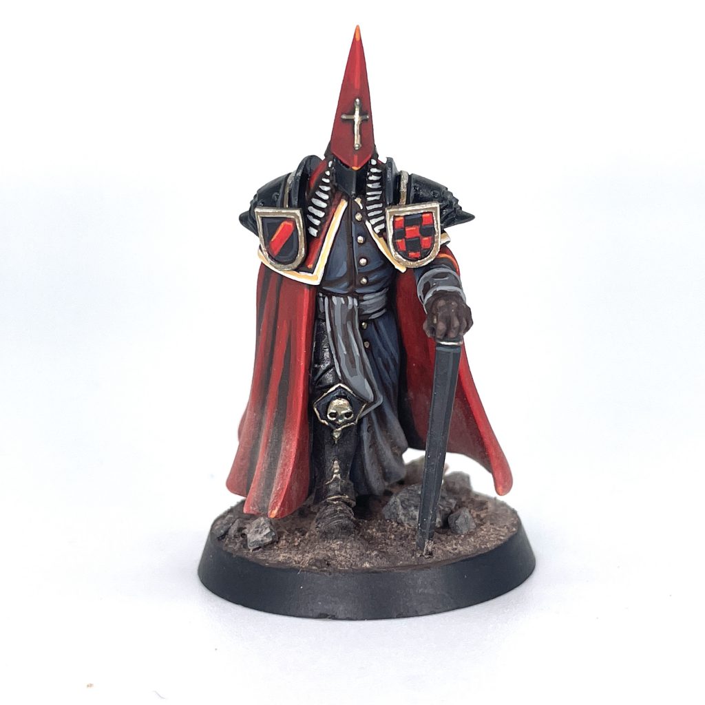 On the table, the Witchburner acts as a slow-moving Blood Marker generator, allowing them to place extra Blood Markers on enemy models reliably at range and melee. The Witchburner has the Negate Fear keyword and, interestingly, has the Elite keyword, meaning they can start getting experience and skills right away. Starting, the Witchburner has a 6” move, with just a +1 to Melee Dice. They come with Reinforced armour, a Combat Helmet and a Gavel of Justice. The Gavel is a one-handed weapon with the critical keyword, and the built-in Wrath of God ability gives the enemy model an extra Blood Marker after the Injury roll, or two Blood Markers if the enemy model has the Black Grail, Demonic or Heretic keyword. Being able to stack 3 Blood Markers on a model has some great value and is perfect for setting up your other units to take down a larder foe.