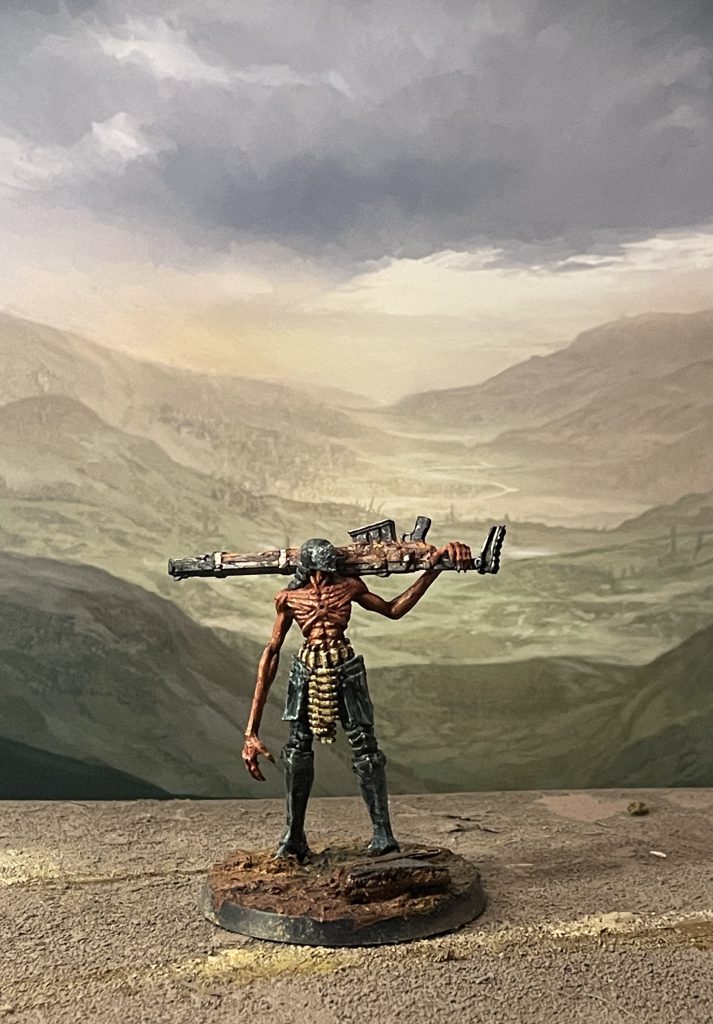 On the table, the Anti-Tank Hunter is a popular Mercenary choice. Despite costing a hefty 5 Glory, it can quickly gain back its cost through its devastating ranged shooting. Being able to be fielded by New Antioch and Trench Pilgrim forces, the Anti-Tank Hunter often fills in the role of the long-range shooter, which these factions usually lack. With a standard 6” move, and a +1 in ranged and melee, the Anti-Tank Hunter also comes with a native -1 armour and a Combat helmet. Adding on Strong and Tough, you have a solid combatant. Where the Hunter shines, though, is its weapon. The Anti-Material Rifle, standard in Heretic Legion forces, is wielded by the Hunter. With a 36” range, a native +1 Injury Dice, as well as Critical and Ignore Armour, this weapon can take out foes reliably and is rightfully a common pick in campaign or one-off games.