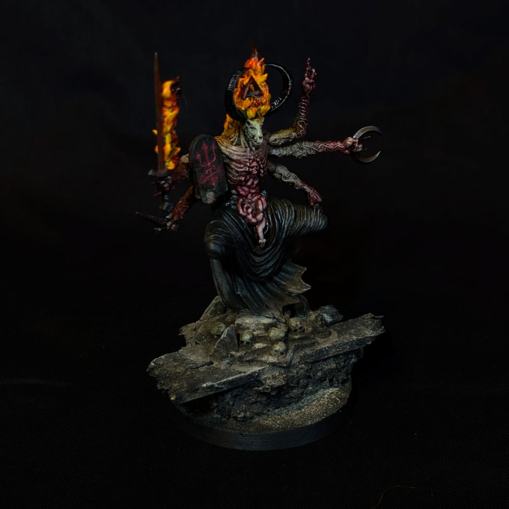 A demonic commander bound in service to a demon lord or archdevil. They command warbands in their master’s service, fulfilling whatever task is bestowed upon them, whether that be fighting on the Frontlines of the Great War or participating in the many battles within the very realms of Hell itself, for the power dynamics of Hell are ever-shifting. Despite their prowess and status in the Great War, within damnation, they are seen as barely above even the mongrel Yoke Fiends; their mortal blood, however small, taints the demonic purity. The disgust they inspire in their patron is only just outweighed by their usefulness, as their mortal aspect allows them to walk upon His land.