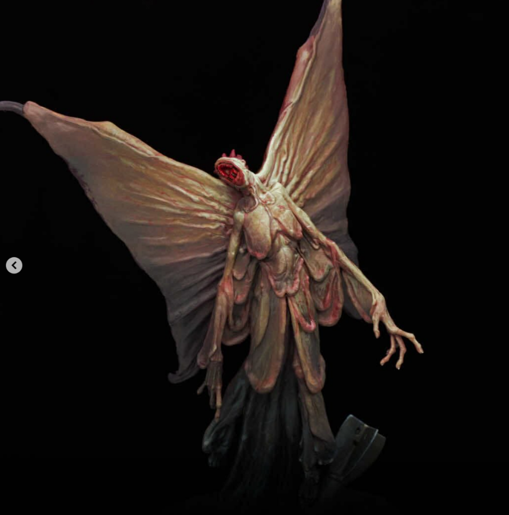 A hulking winged creature that picks off their prey from above with careful precision, they consume with their many mawed torso. Even once defeated, all is not lost, as the monster simply solidifies into a cocoon, awaiting a Thrall to come close, so it can consume it and rise again.
