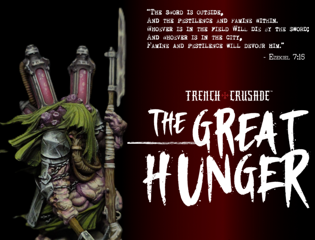 The Great Hunger is a variant warband of the core Cult of the Black Grail Warband available in Trench Crusade. Created by Creature Caster, in collaboration with Trench Crusade and approved by Tuomas Pirinen, the Great Hunger offers a unique take on the Cult of the Black Grail, transforming the usual steadfast march of Beezlebub’s forces into an insatiable force that wants nothing but to consume. On top of the expected changes to the armoury and list construction is a new mechanic in the form of ArcanaPutrescere, acting as a magic system in a similar vein to GoeticMagic from the Court of the Seven-Headed Serpent warband, but utilising the unique InfectionMarker mechanic we know from the core warband. We’ll get into how it works exactly a little later, but it’s great to see the expansion of magic in the setting.