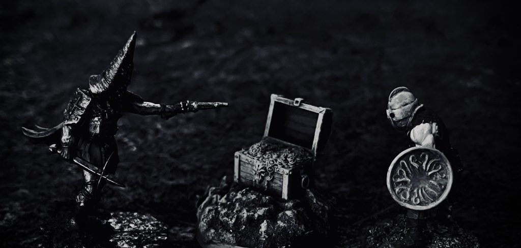 Victory is achieved by having models touching the Treasure Markers and completing a successful action roll. After the VP is claimed, the marker is then flipped, showing that it cannot be scored again for the remainder of the turn. Once a turn has ended, flip over the claimed markers After turns 1, 2, and 4, two of the Treasure Markers are randomly removed from the battlefield. The winner is determined by whoever got the most VP throughout the scenario. The Glorious Deeds have a good mix of incentives between murdering the opponent’s warband and interacting with the Treasure Markers.
