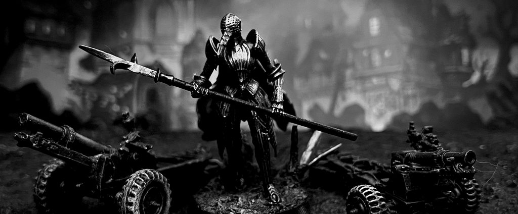 Uh oh! There are some funny little guys that go by the Knight of the Fly Butrusius Cystgorger shelling the buns out of the battlefield while you and the opposing warband are gathering treasure (placed as objective markers) throughout No Man’s Land. The deployment is using the Fog of War style, meaning the players roll for which side of the board each model deploys after the first half of their warband is deployed.