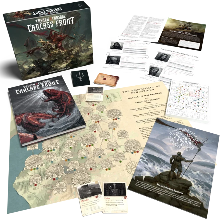 For those who are not aware, the Carcass Front was originally planned as a Stretch Goal award during the original Kickstarter campaign. Given how Trench Crusade blew past all of its goals, not only will all Kickstarter backers get their promised rewards (and more) in the form of digital versions of almost all the content, Factory Fortress have now produced a physical edition of the Carcass Front, acting as a two-player intro box, complete with two new variant faction kits in the new sweet sweet plastic we are starting to see more of.