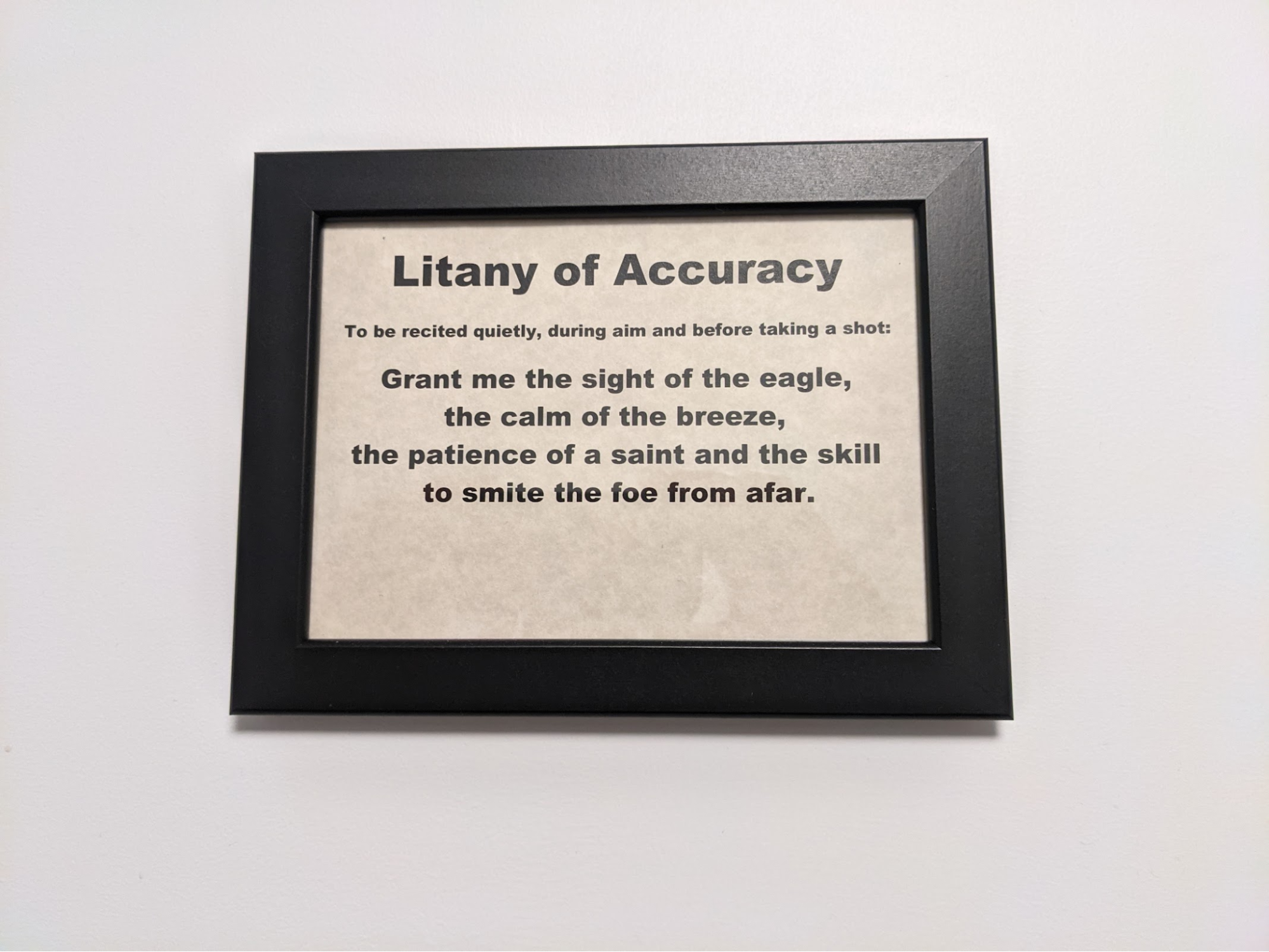 The store has one unisex bathroom which was in good condition (as far as either coffee shops or gaming stores go). I particularly appreciated the framed Litany above the urinal: