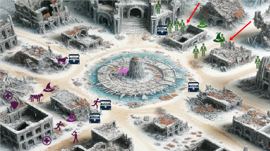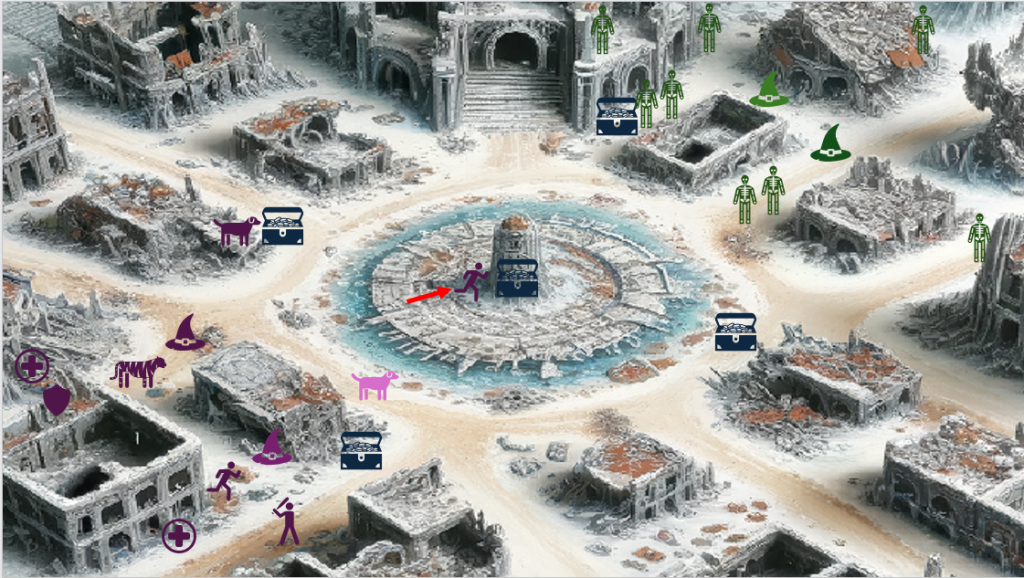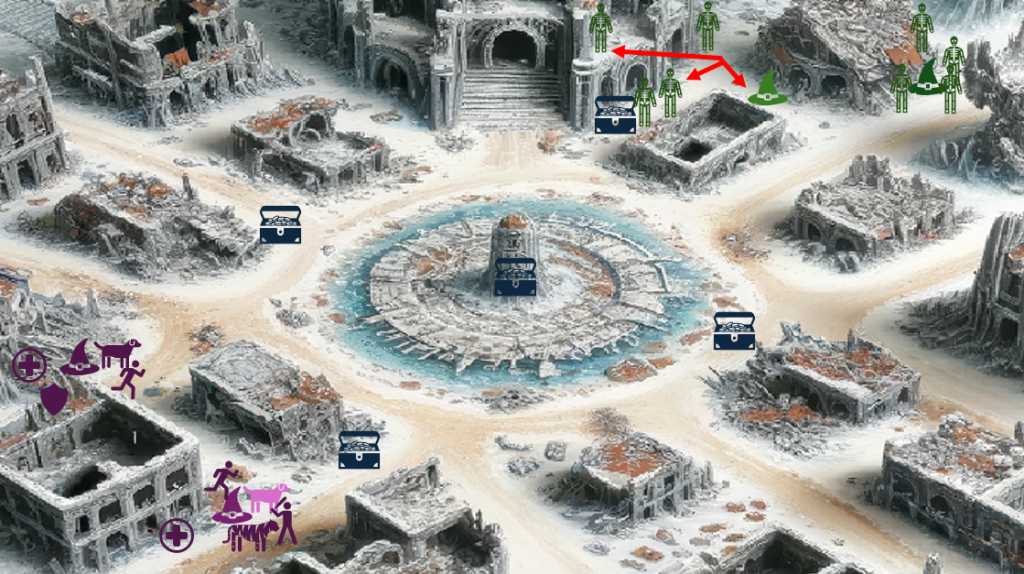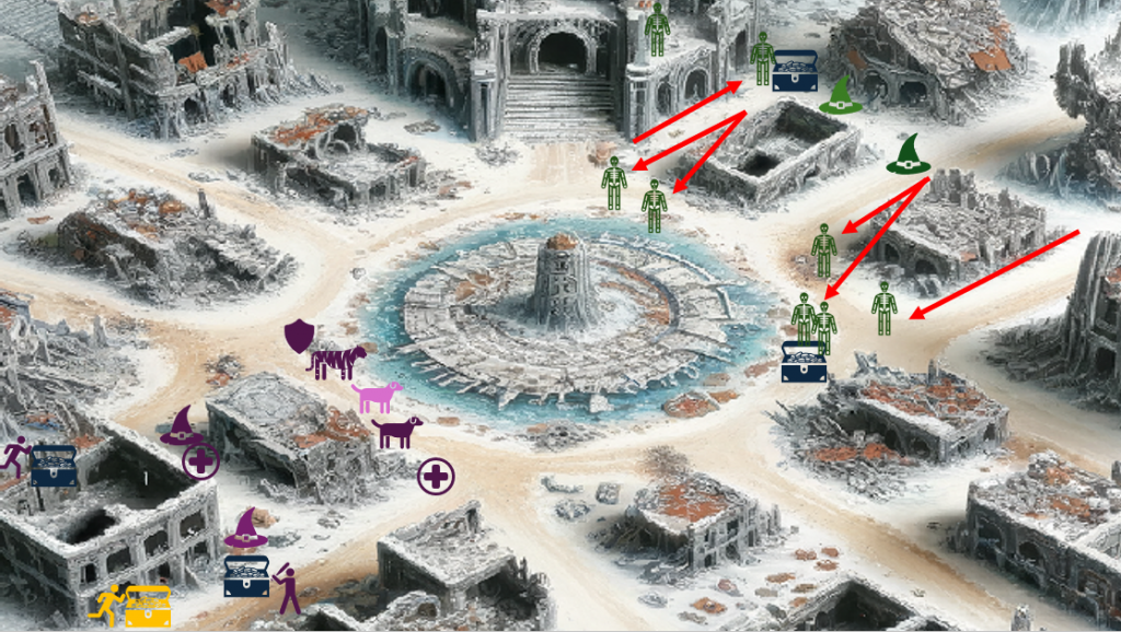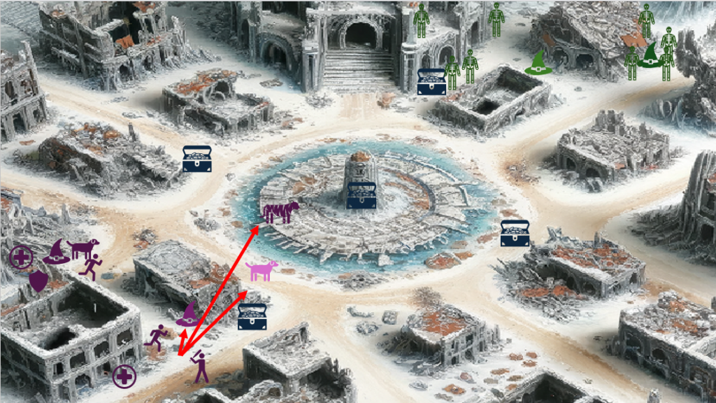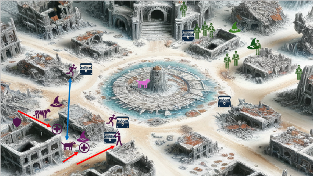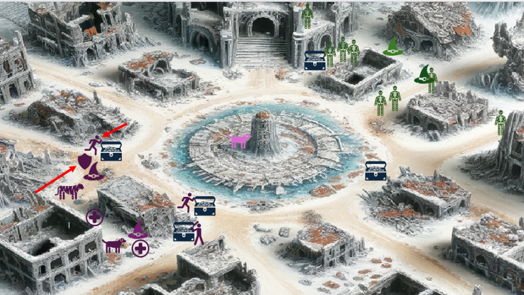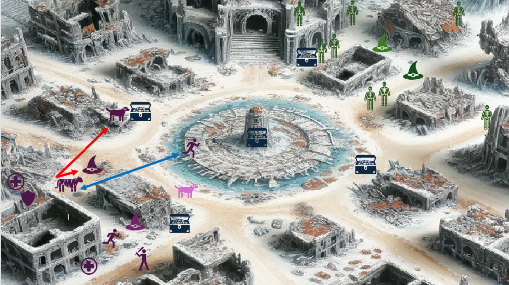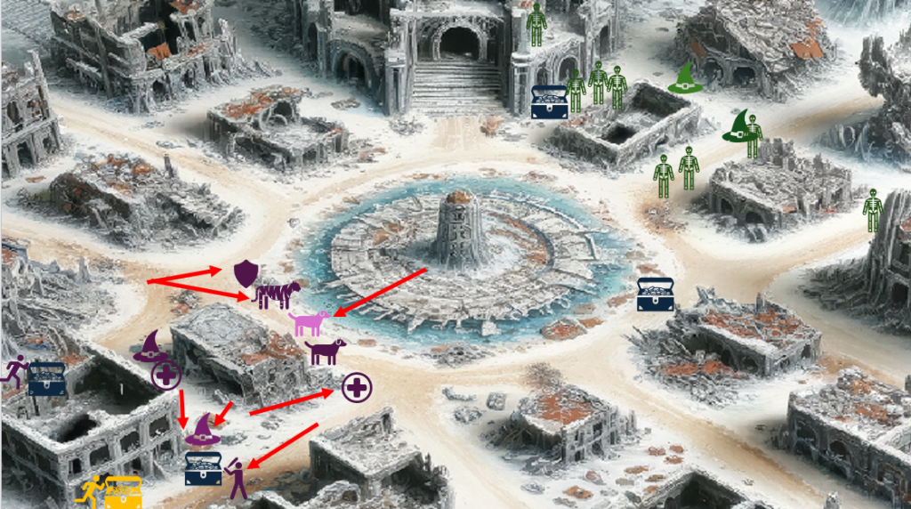 All that was left to do in my soldier phase was just to start running away with my three treasures, and then start creating a protective barrier with my other soldiers to cover the retreat and protect my wizards.