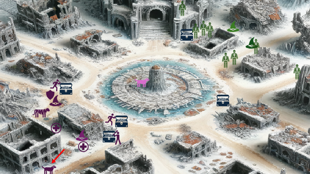 I also double-moved the thug to the closest of the treasures (the participation prize) but didn't have enough movement to pick it up.