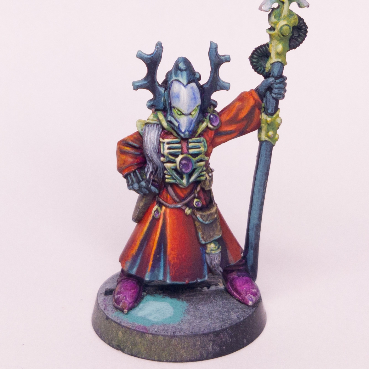Nerodine: No. Two months ago, I started painting a metal Eldar Seer Council as my original project. I felt I was at a standard now where I could paint the original Eldar figures well enough. So I was like, "This is quite exciting now. So I started painting, but I was just rubbing paint off. Even though they were on a base, every time I turned around I just seemed to pull paint off. And I can't do this anymore.