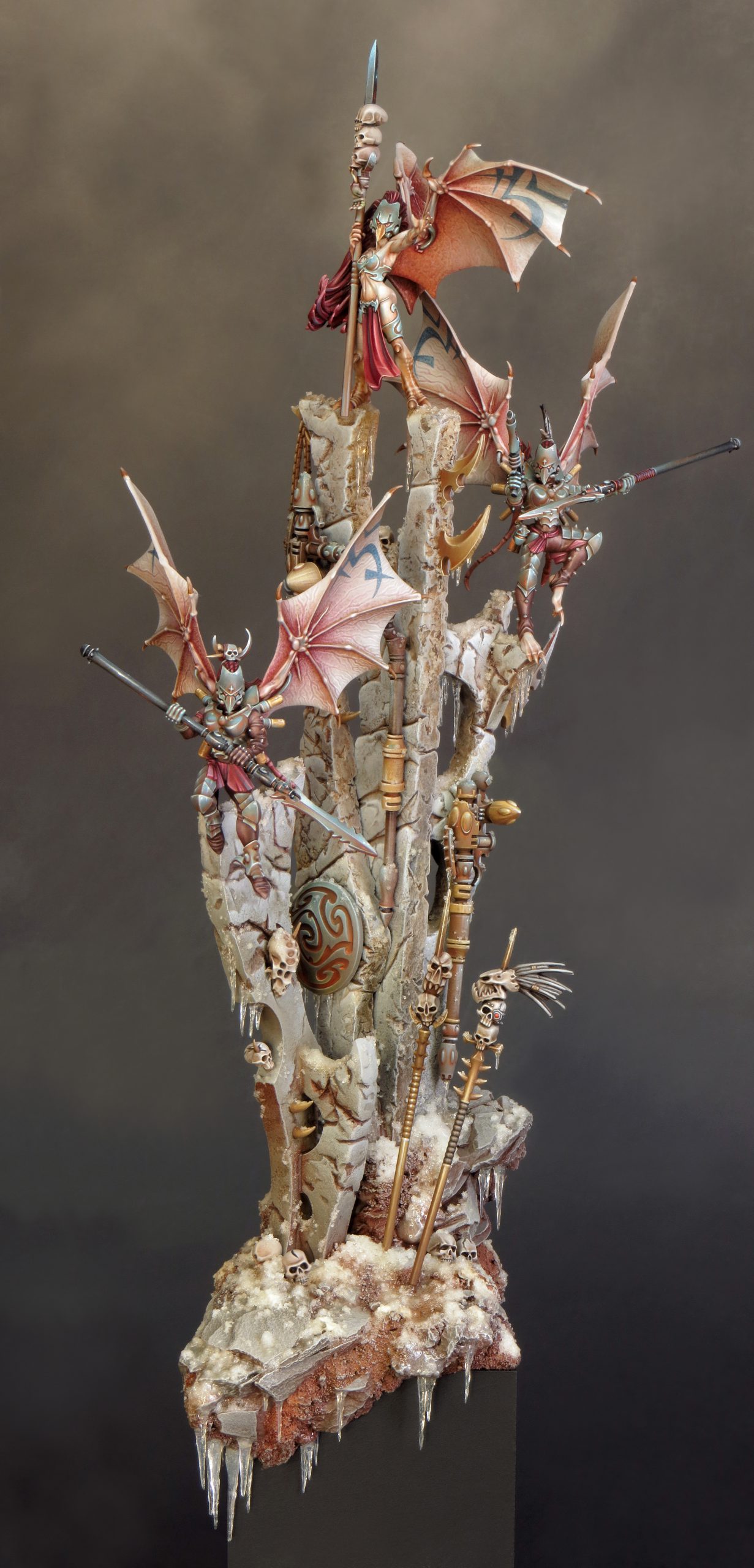 I worked on getting my painting up-to-date and the on-line forums were a fantastic place for me. They were so supportive and nurturing. There were all these other pairs of eyes to look at your work and see the things you didn’t see and it really helped me to grow. I carried on working like this for a year or two and then, while I was working on a piece featuring some Dark Eldar Scourges, people asked, “Are you going to enter that in Golden Demon?” And I thought, “I think it’s time to have a go, so why don’t I?”