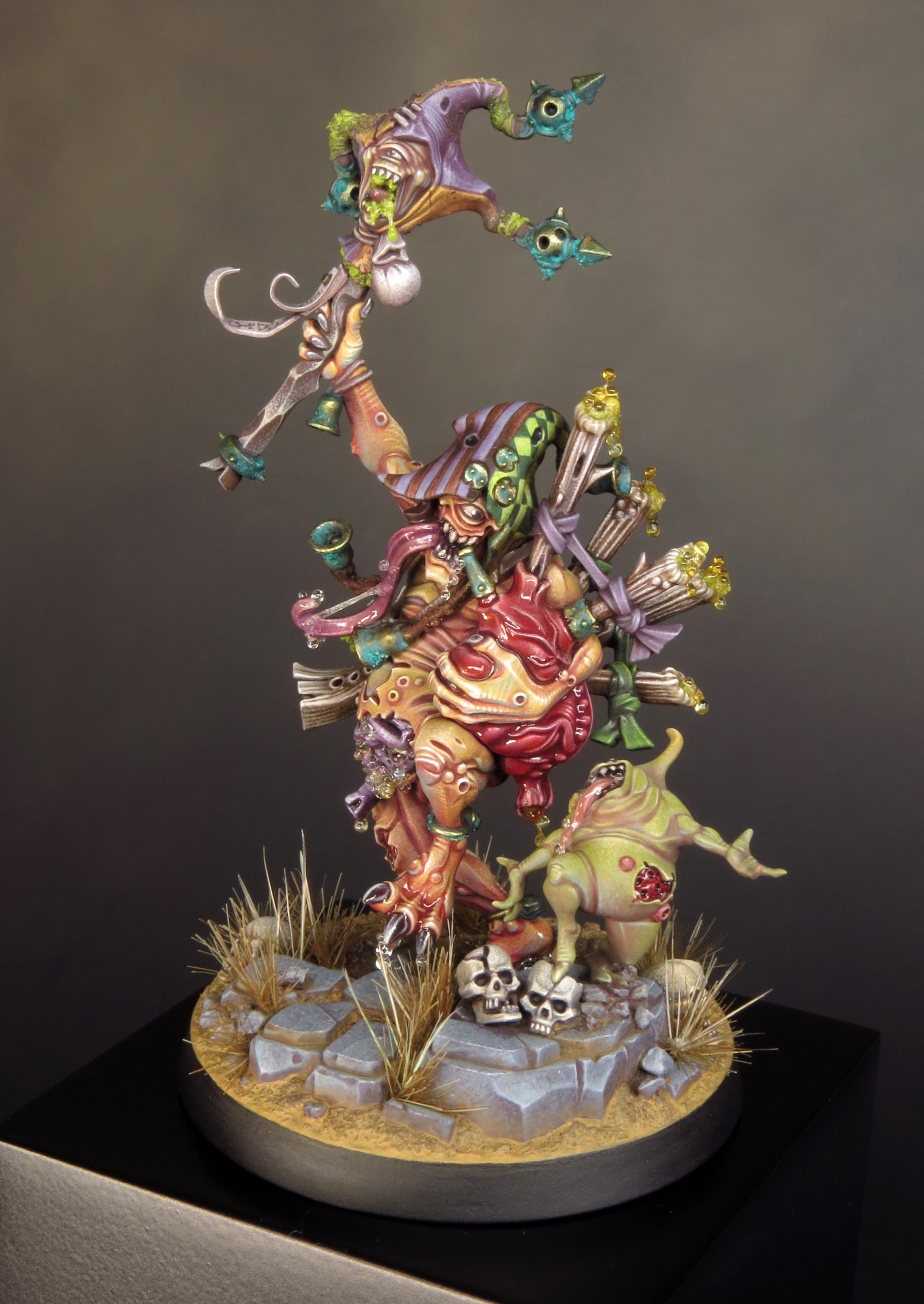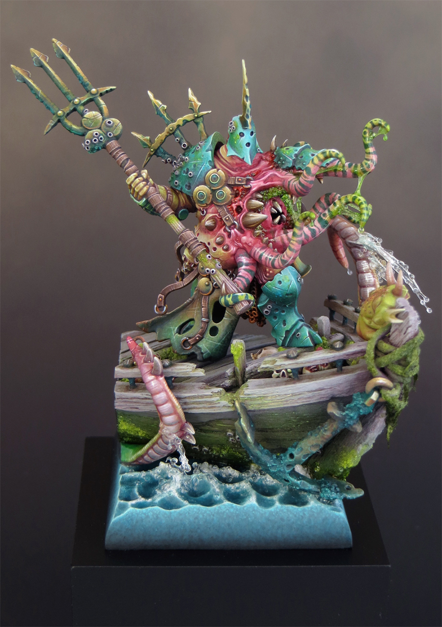 DS: Good question, because it is difficult. I started to over work this one. I was procrastinating. I knew it was finished but, because I’d had it on the go for so long, it was hard to put it down. I started painting extra Nurglings and thinking about adding other extra bits. I was painting these Nurglings and I thought, “You know what? That Nurgling’s okay, he’s fine, but I’m not putting him up against the model and going, “Wow, that Nurgling is the crowning glory. It’s not brought anything more or anything extra. And I just had to say to myself, “Stop. You know it’s done.”