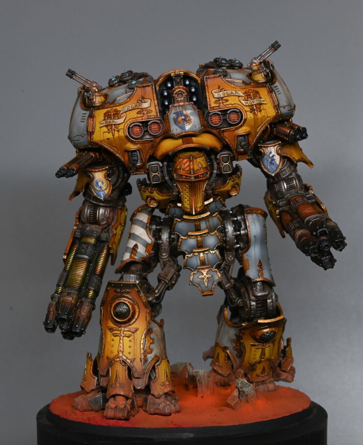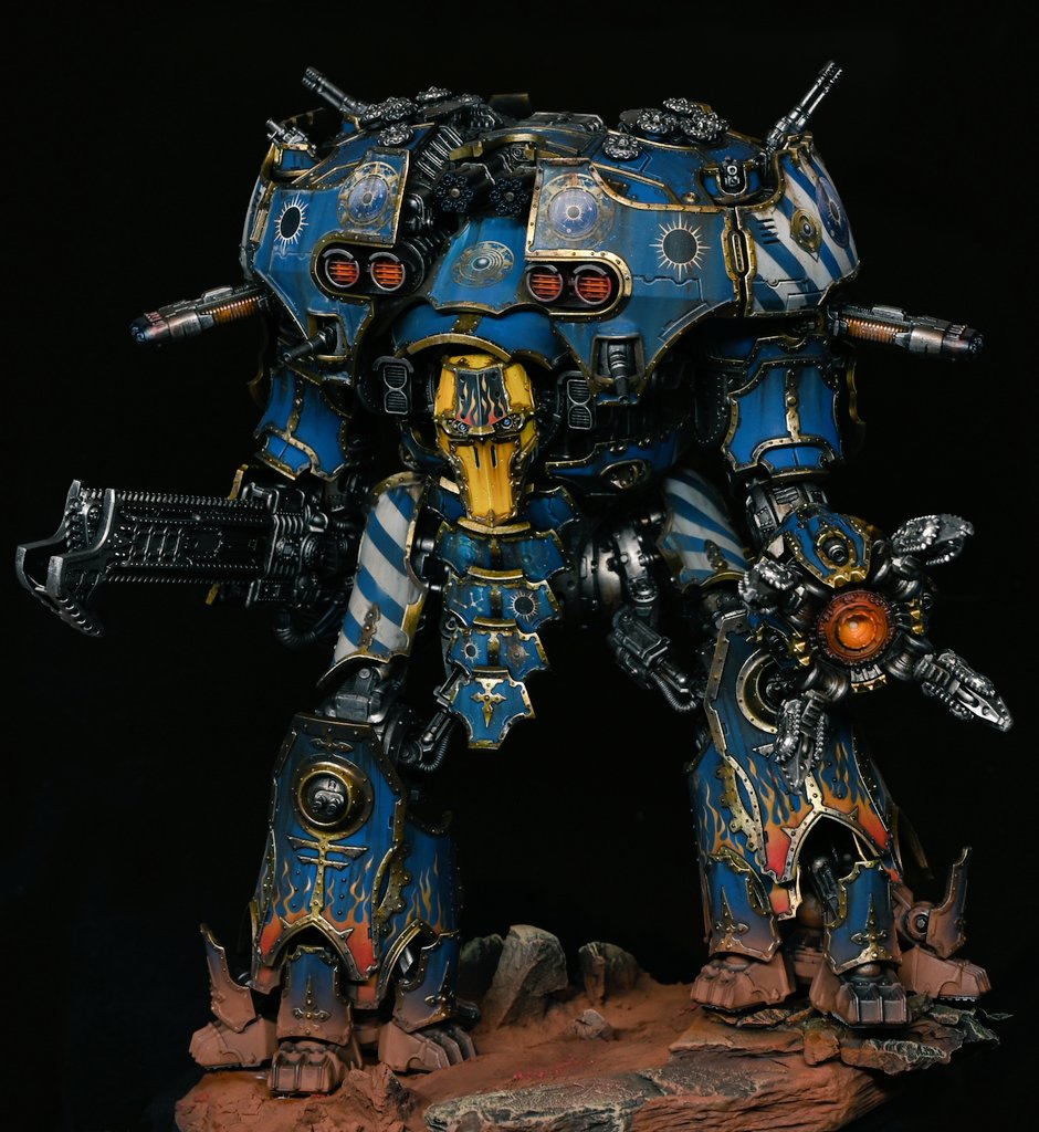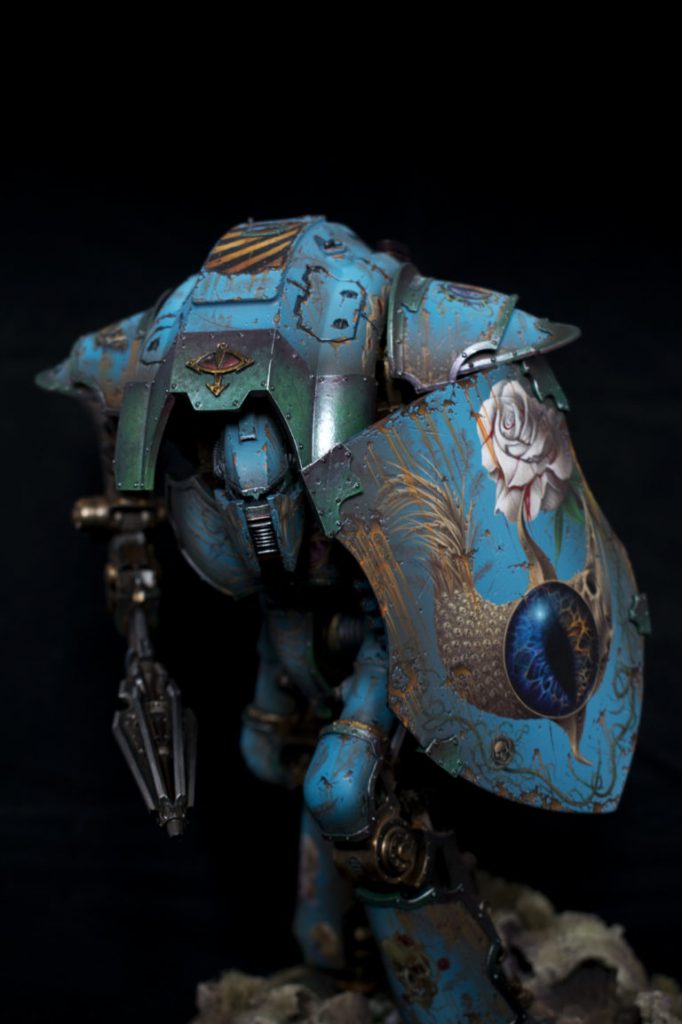 RG: The other thing was I put in a Warmaster titan for Titanicus. This was one that was sent to me by Games Workshop. It's the Iconoclast and I painted this quite quickly. It was more of a case of, “I should enter something else” and I liked the model to be honest. I shaved off the details on the carapace armor at the top - he's got the scroll work on it - I shaved all that off and put decals on there instead. And I think that actually looks a little bit nicer to just give the model a bit more sort of breathing room with a flat surface. I do think sometimes maybe they put more detail on than maybe it needs to be. I know it makes it easy to paint, in terms of army painting.