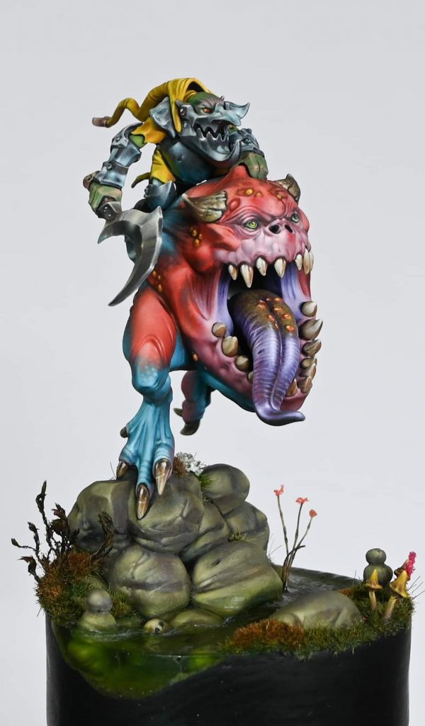 RG: So I've got one main entry which is a Loon Boss on Squig Hopper. So from the Gloomspite Gitz, that was originally going to be for AdeptiCon in 2019 or 2020. But they canceled that and I hadn't finished it, Covid was kicking up, everything went bad, and I lost motivation to finish it. So it was half done. Then this Golden Demon was coming up - a few of my friends were trying to get me to go back to the recent AdeptiCon as well but I just didn't have enough time to do everything that I wanted. I thought for the UK GD I'm going to get that Loon Boss finished.