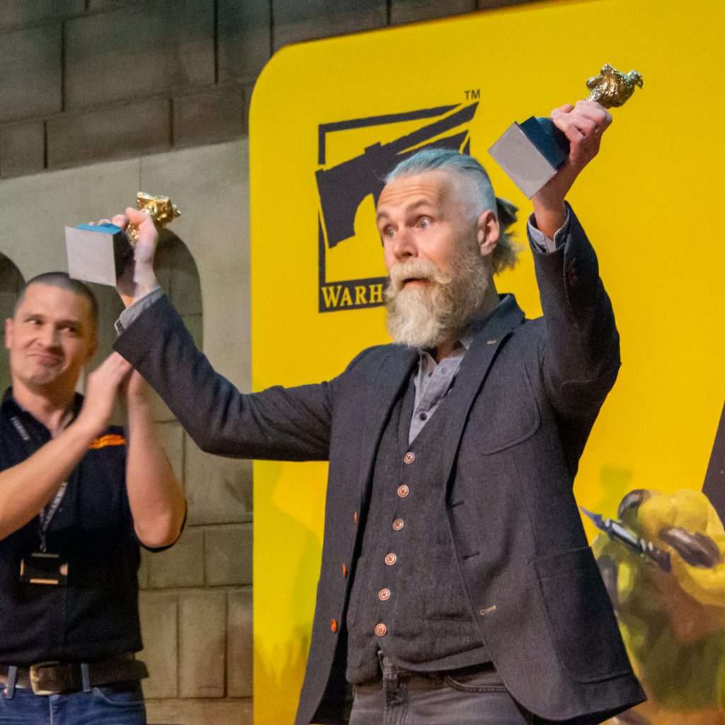 GH: First off, congratulations! It’s amazing what you've done today! What's it like to not only come back to Golden Demon after a two year break, but to win two Golden Demons and lift the Slayer Sword? How’re you feeling?