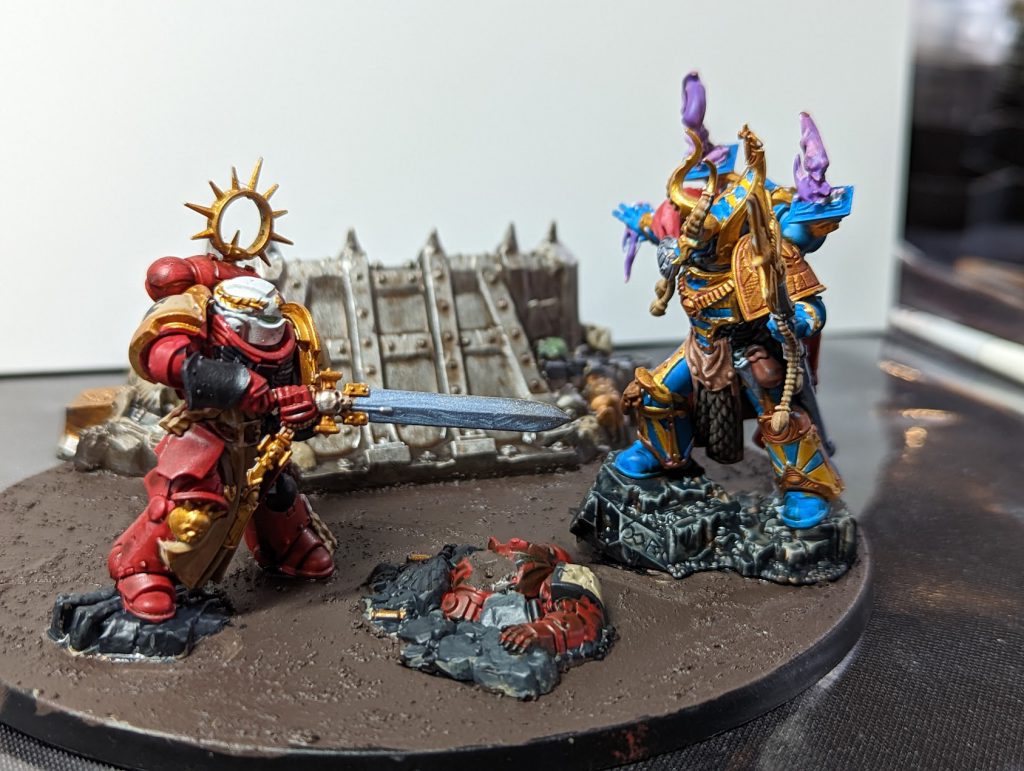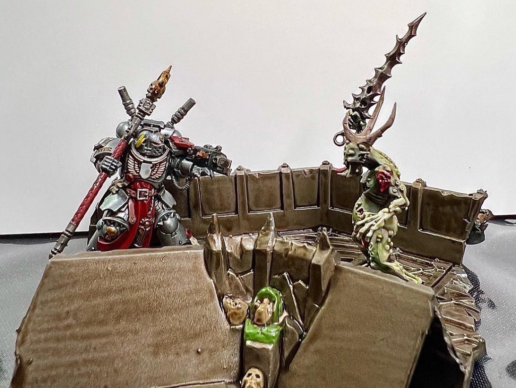 I also opted for the Primaris Champion and wanted to do a duel piece with him taking something on - meaning I wouldn’t have to focus as much on the conversions itself. Rummaging through the piles, the only thing that I found suitable was a Thousand Sons sorcerer. My first mistake, as this has *far* too much trim to paint in such a short time. Others would find poxwalkers which take very well to contrasts and washing to face off with their champion.