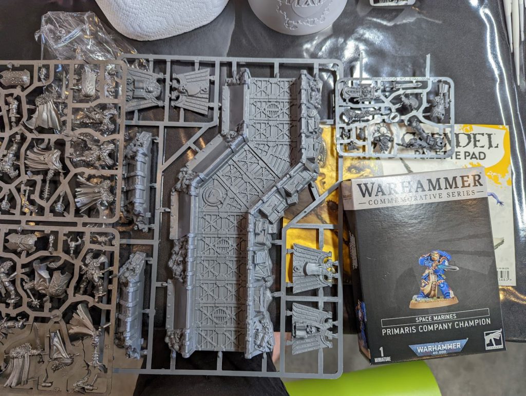 There were some insane sprues in the pile too, such as half of a Belakor, terrain of all kinds (Age of Sigmar, 40k, and even Titanicus), Sisters of Battle, Grey Knights or Daemons. A real converter’s dream to be able to take from without having to break the bank!
