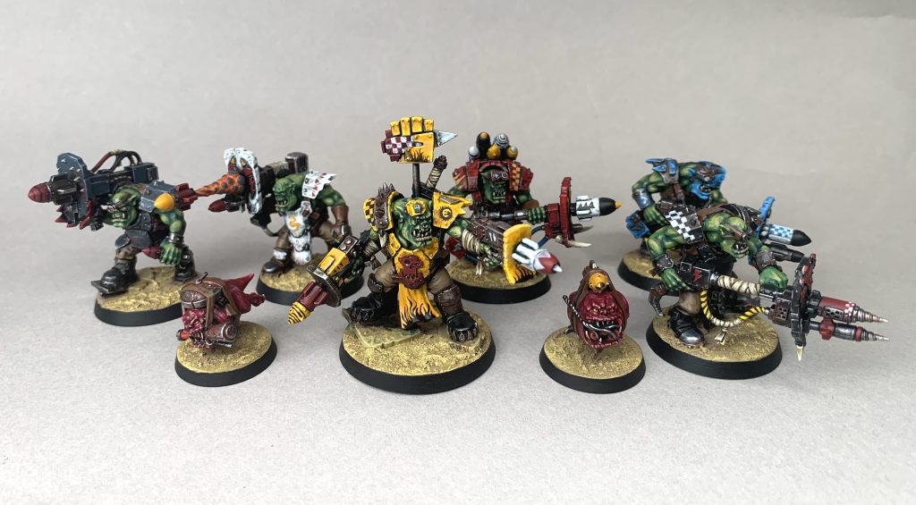 My Wrecka Krew are a warband of Deathskulls klan Orks, who want to use their superior firepower and armored plates to get close to enemy tanks, blow them open, and loot all the choice wargear inside. Dealing with enemy Kill Teams is an annoying distraction, but nothing a few well placed rokkits (and many errant ones), or a knucklebusta to the schnoz can't handle.