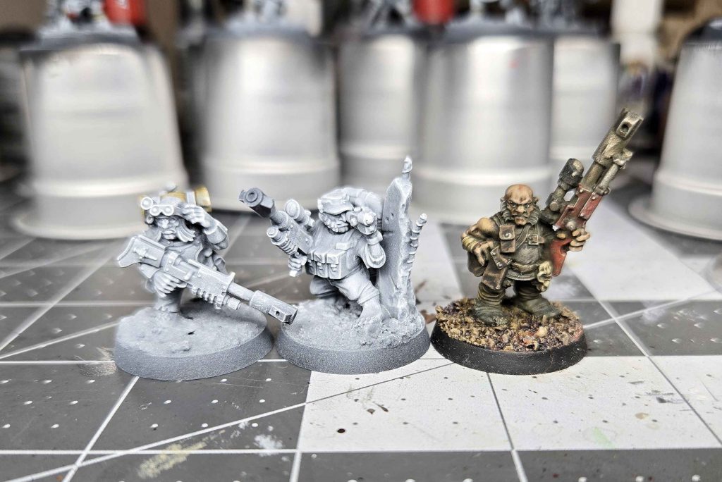 I had an extra Rein & Raus from the Combat Arena: Lair of the Beast box, and figured that it might make sense to get a couple of extra operatives out of them. Technically, Raus is a Ratling Raider - the one with the grappling hook. There are plenty of extra bits in the box, and I did a simple kitbash to turn him into a standard sniper. Folks will be happy to know that both of those dudes are the same scale as the Brutal and Cunning (and the Provisionally Prepared limited release model).