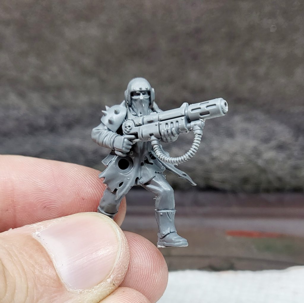 For the dudes who are holding Lasguns, I recommend sticking to simple headswaps. The only OG Traitor left is the flamer dude... and honestly it is just too much work to make it work. I ended up giving him a grenade launcher and sculpting some fur and I do not love it. Your mile may vary... maybe you will have a much easier time than I! All in all, I had a phenomenal time with the kit, and look forward to snagging another one to build stock with lasguns (and to hoard those amazing bits!).