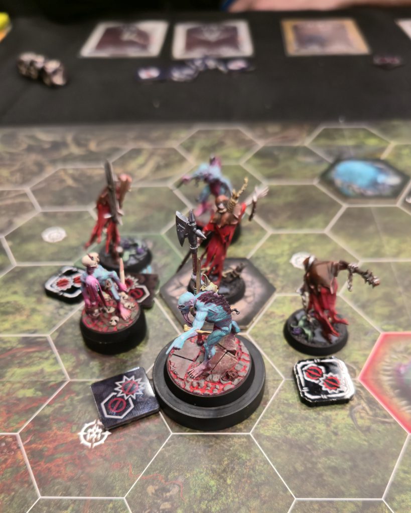 Craig and I swapped warbands and decks for a bizarro rematch after finishing our "real" games. Credit: Craig
