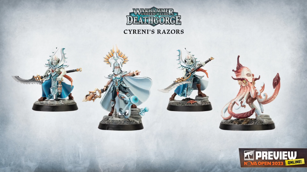 My first entry in this series will be with the warband that is responsible for me even being aware of this game's existence. Cyreni's Razors, and more specifically the awesome model of the squid Cephanyr, caught my eye during the NOVA 2023 previews and I've been entangled with this game ever since. I'm ashamed to admit I never got around to exploring them fully in the last edition of the game, nor have I spent time with them in the latest edition. I was worried after the Spitewood release that the digital warbands would have rotated out of legality for organized play, meaning Cyreni and her crew would be gone. Fortunately, this wasn't the case and Cyreni (plus the other digital warbands) remain legal for organized play. I felt like this was a sign, so now it's time to get the reps in and see what they can do!
