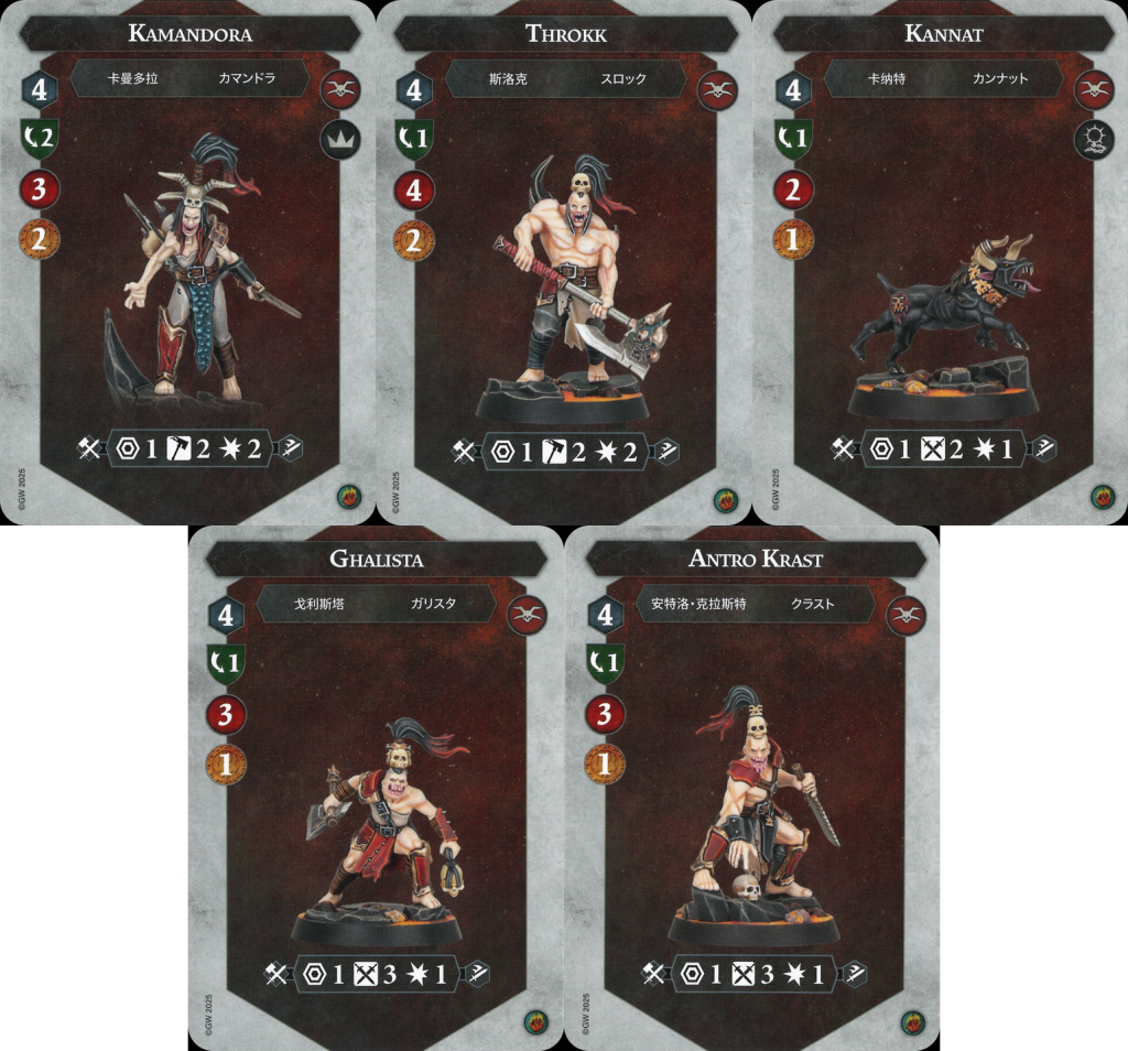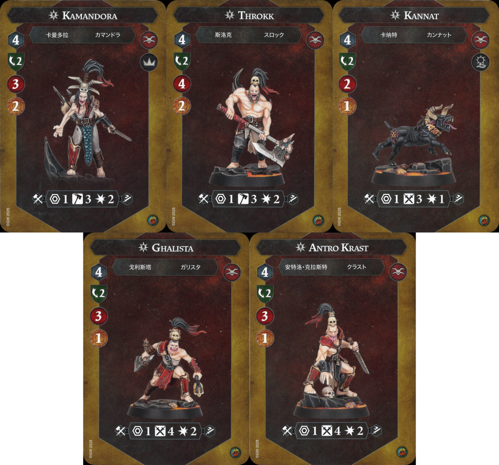 Kamandora's Blades fighter cards. credit: UnderworldsDB.com