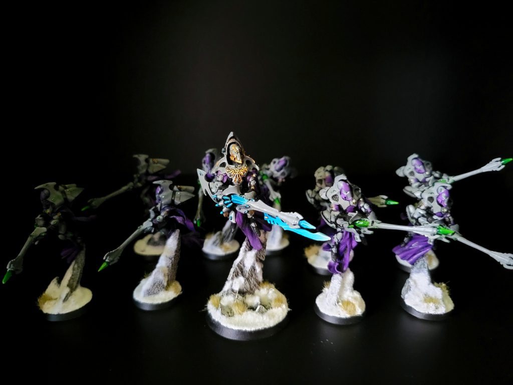 Uncle K strikes from the shadows and lunges straight for my heart. The best melee fighter of all the Phoenix Lords, he’s the only one to come with both a sweep and strike option. Like his shrine, he infiltrates, so putting him with a unit in a mid-field ruin early is a good option. He’s not bad as a solo unit if you want something to go and chop up some Space Marines, but giving him five friends isn’t a bad choice.