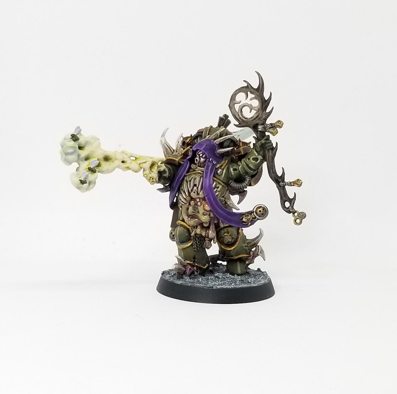 That's it, and it's way less useful than it used to be. This guy is cheap but that's all he has to offer. Armed with a bolter and a plague knife, there isn't much else to say here except that you don't need this guy in your army when other options are available. Going to OC 3 with Plague Marines is cute, but if that's a big concern why not just give your opponent -1 OC instead?