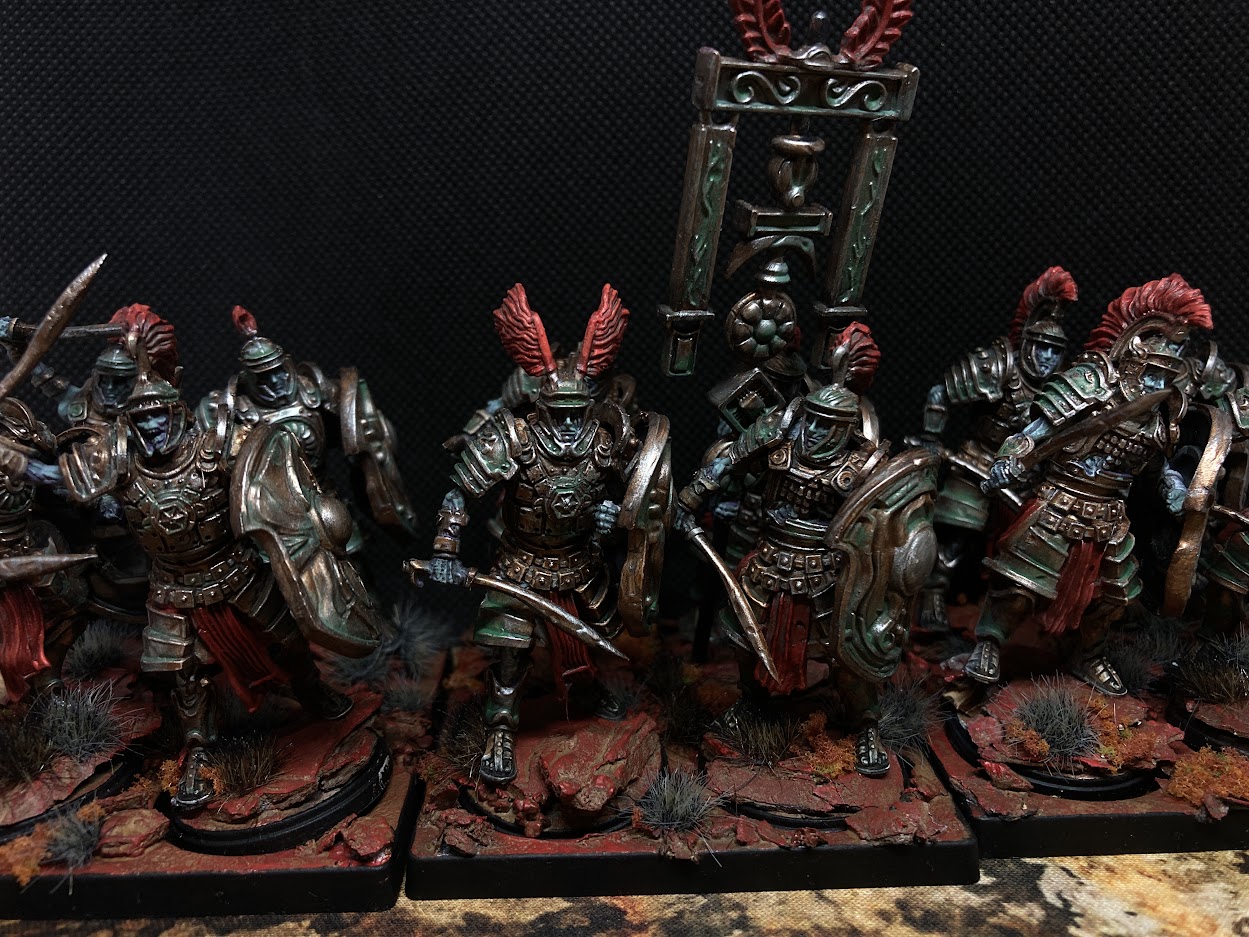 This is a huge, durable, chonky unit with good armour, the Support special rule and possible healing support that you want to park on an objective from this time until the end of time. These are slow and ungainly, their mass making them almost impossible to turn, so they do their best if their flanks are locked down by your early game units. If your scoring brick finds itself getting held up before it gets to the objective it’s a disaster; each turn they’re away from where they need to be is a turn where your opponent is getting ahead. Accordingly, getting this on the table early and getting it parked to its footprint covers as much of the 6’ radius around the centre zone as possible is a huge priority. While these are normally medium, a heavy unit with Flank (and preferably Double Time) can arrive quickly enough to do work as a Scoring Brick.