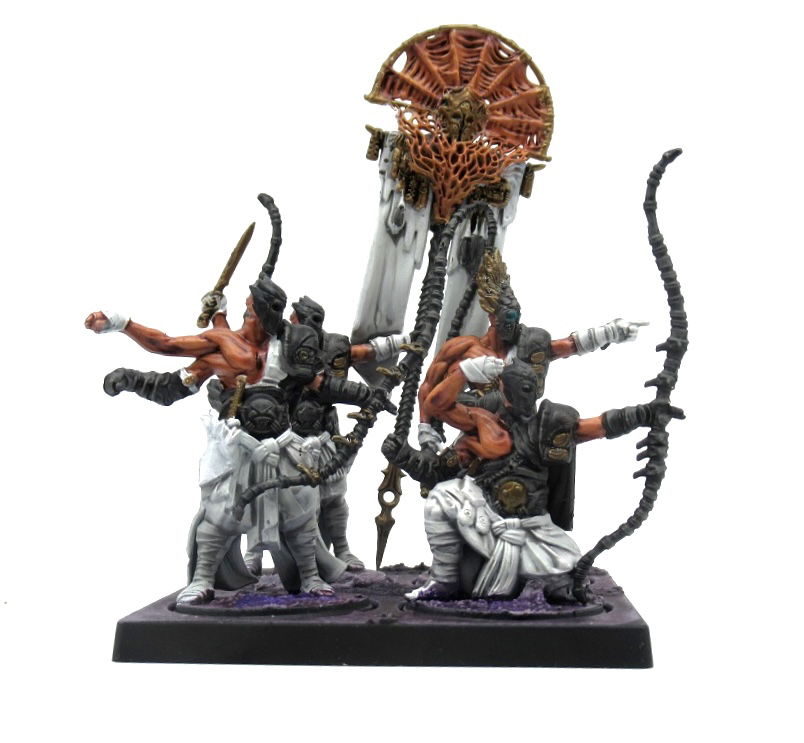 Many low quality light ranged units fit into this category; the militia archers of the world. Their role is usually to fill out mainstay slots and inconvenience light units that are seizing board control. Sometimes these will be where a more important support character hangs out and casts spells from. The main thing to be aware of with these is that they are both vulnerable and bait – if you can tempt an enemy unit to dive deep in the early game to scare off some militia archers they are at serious risk of being out of position and annihilated when the reinforcements come through, but on the other hand keep in mind the huge threat of a move+charge means that even a basic infantry unit can hit you from up to 16 inches away.