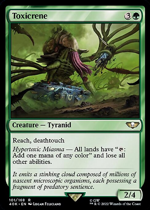 BPhillipYork: This is expensive but pretty solid. This Tyranid deck is looking extremely beefy. A 5/5 and a 6/6 that gives all your creatures trample for 6 is expensive but it also lets you grab it back out of your grave mid-late if you have cards you don't need, which is a nice recursion option for a grindfest.