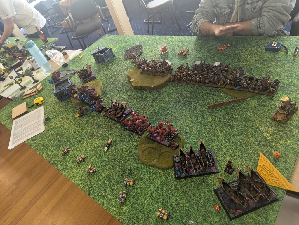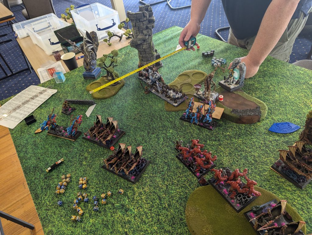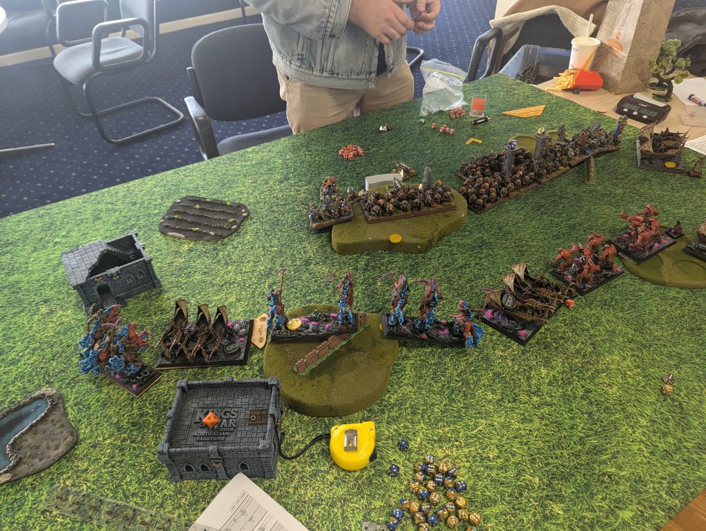Two big wins on day two have now put me on top table, and I’m now playing against Rex’s infamous Dwarfs for top spot. Rex is ahead enough tournament points that a draw won’t do. I need a win to win the tournament, and a sizable one at that, while a loss could drop me out of the top 5.