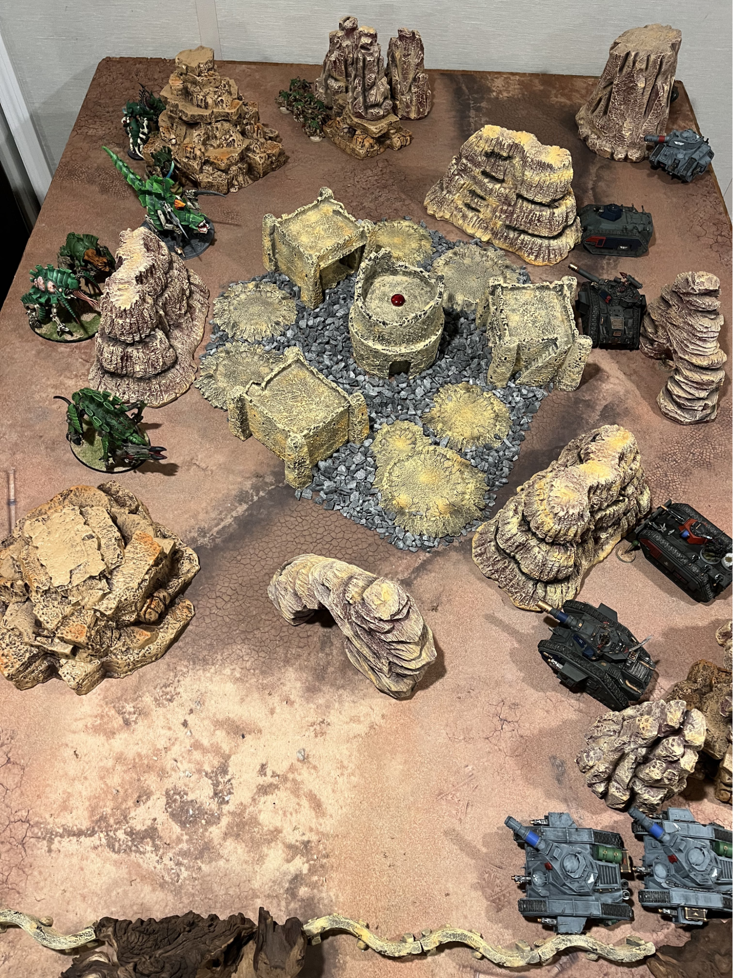 Aerial surveillance has detected Aeldari and Necron forces fighting in the mountains, The Aeldari seem to be constructing something in the mountains but no one can truly understand the inferior Xenos machinations. Reports are also coming in of Necrons causing landslides and tremors. Keep your feet on the ground out there!