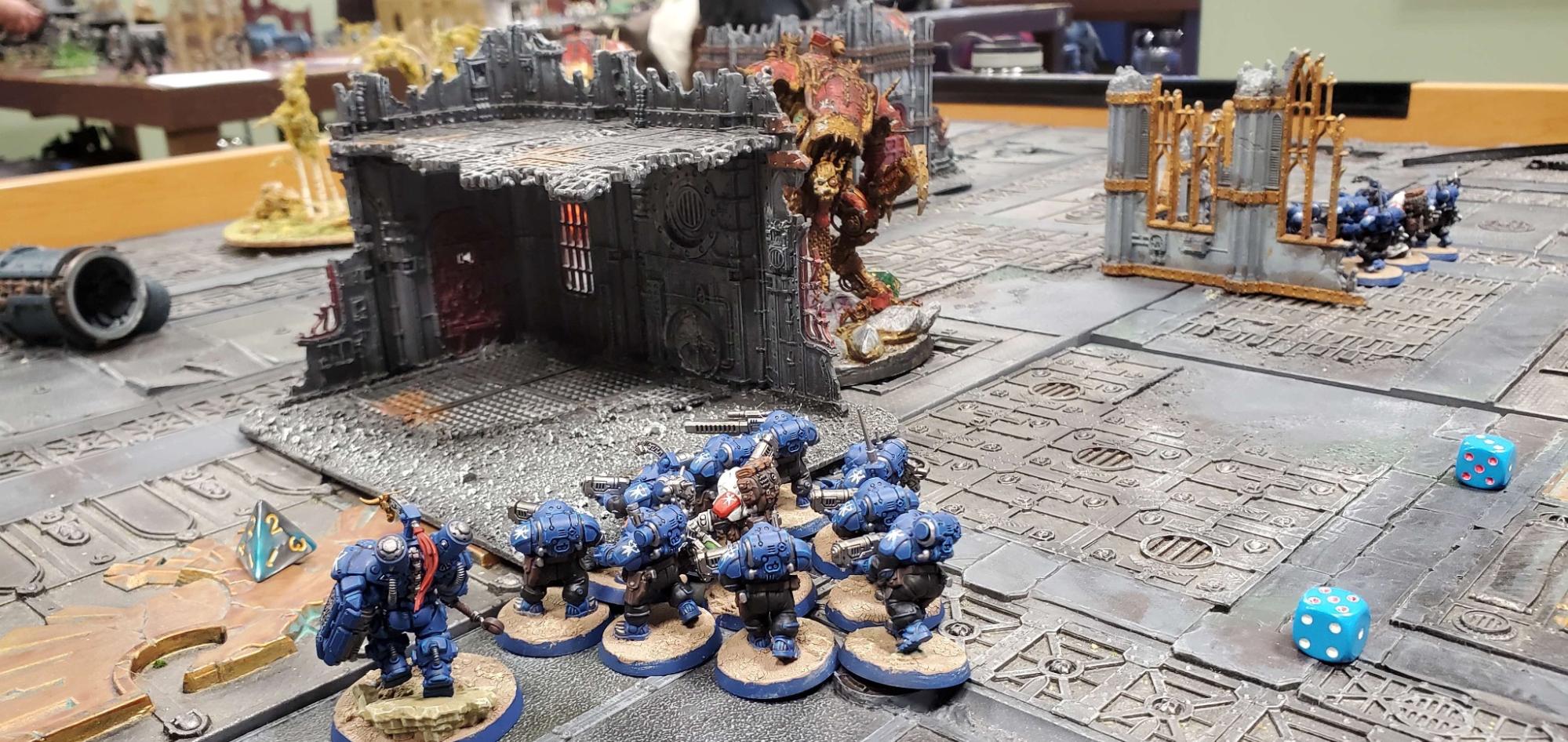 Squad Tourbillion, of Ultramarines Strike Force Faustus, attempt a desperate fighting retreat from freeblades pledged to the Noesite cause.