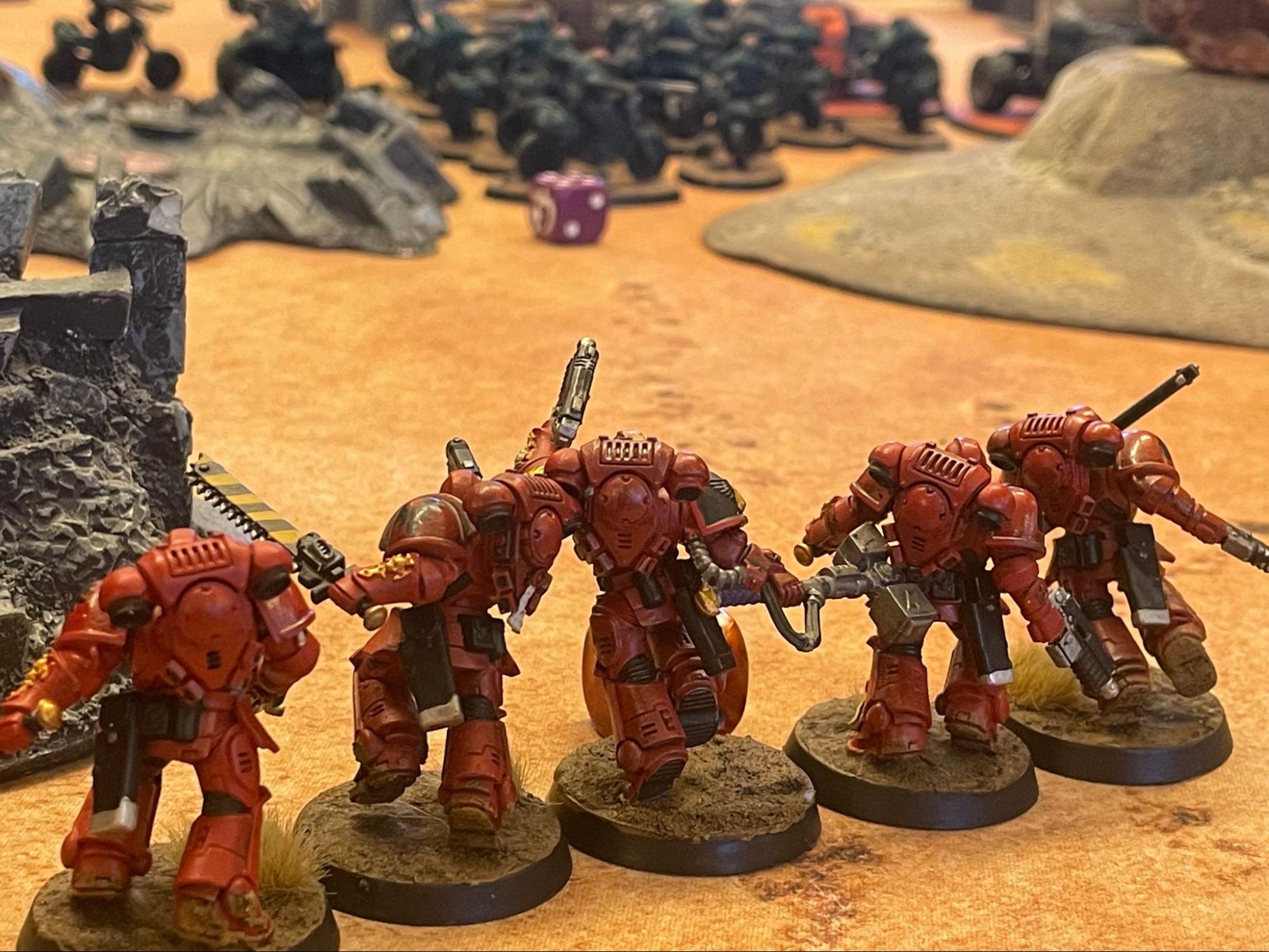 Blood Angels Assault Intercessors from Strike Force Angelos charge across the wastes towards the genestealer-tainted miners of the Departmento Laborum. Photo: Sam M.