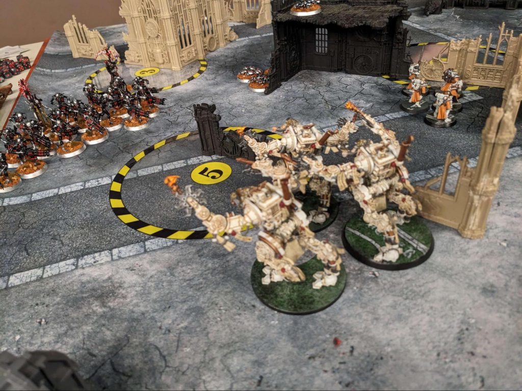 This week the Moon experienced a lot of action. Eldar are attempting to awaken something dormant that is hidden there. The forces of Shrine Sanctuary Lucia were pulled away from their protection duties at the Tomb in order to protect long lost Imperial assets on the Moon from Ork invaders. The corrupted knight house Rusted Talon has also clawed their way to the Moon in an attempt to secure resources they seem to think will be vital in upcoming battles.