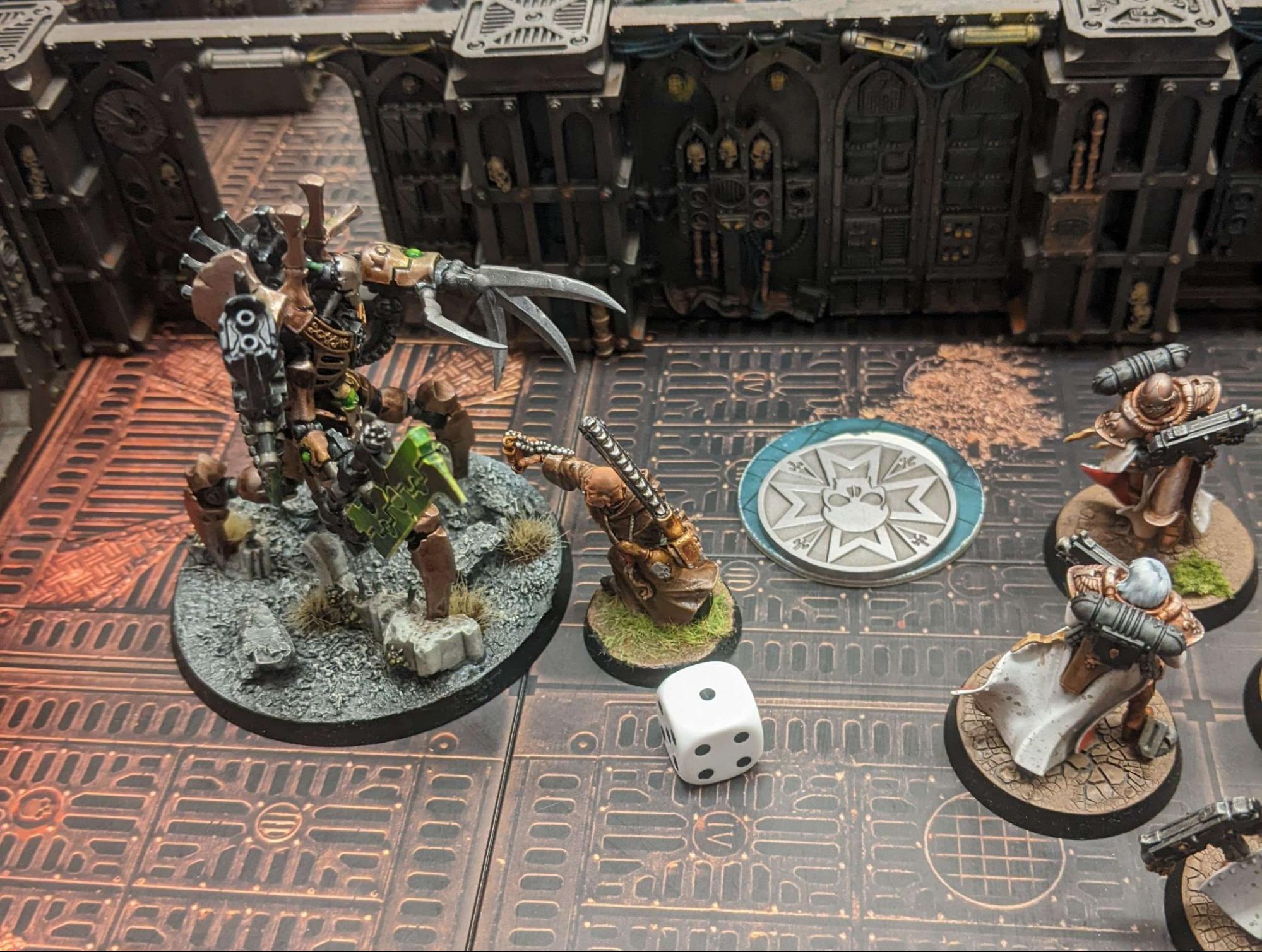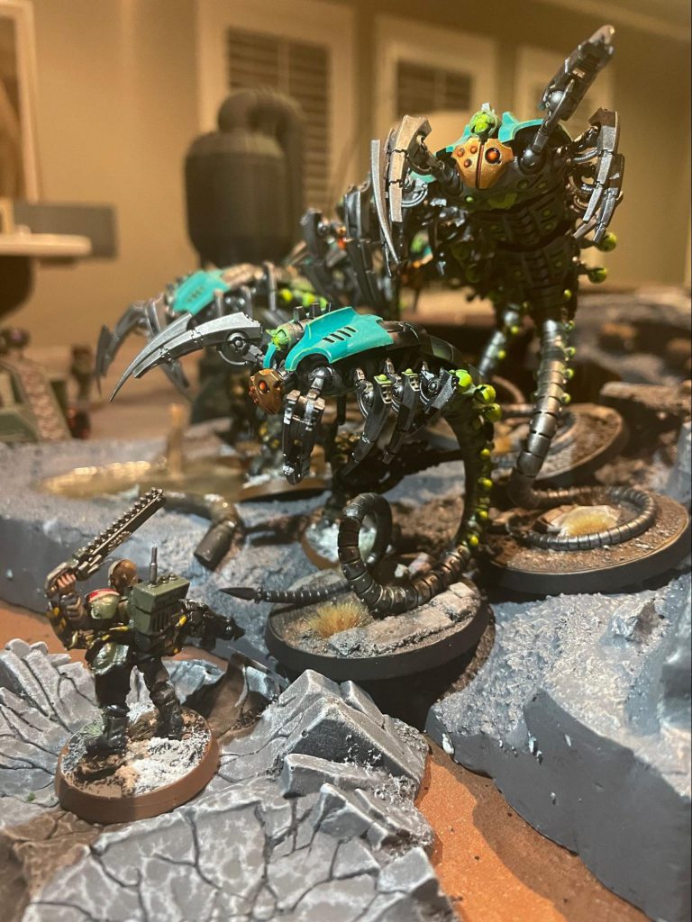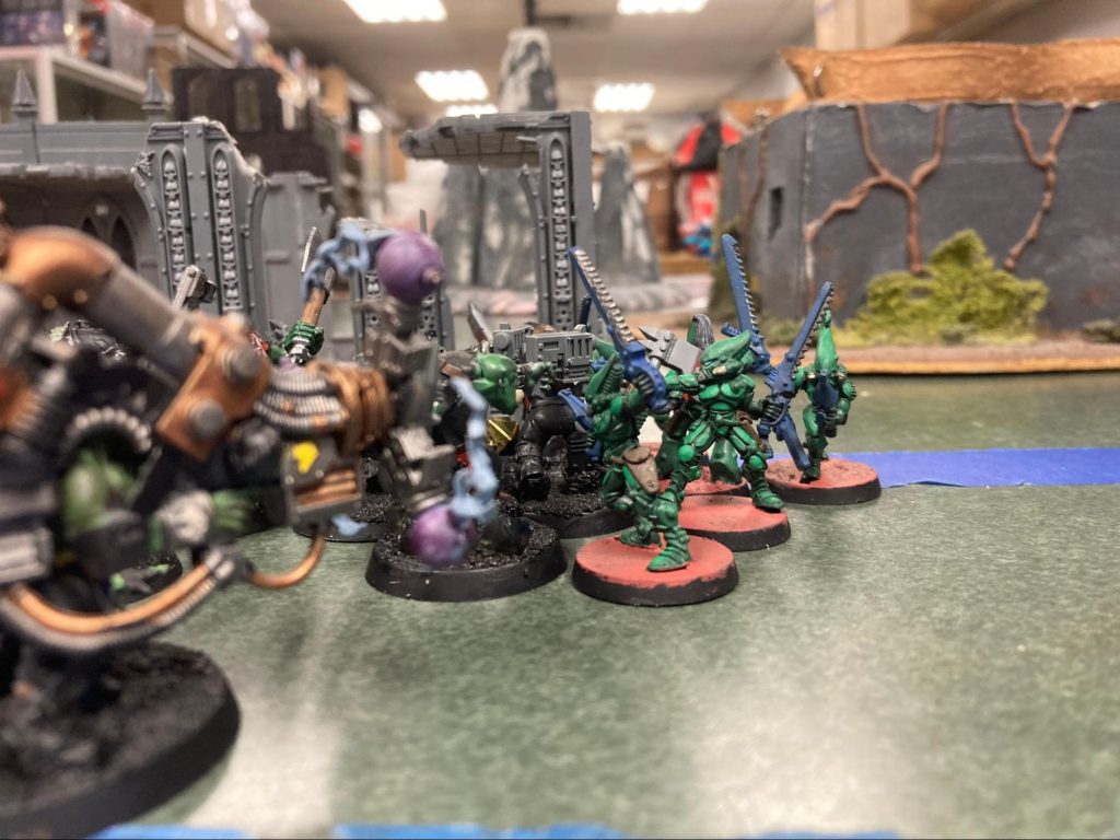 Pa’ul Tredes sends out his Striking Scorpions to finish off Boyz of the WAAGH! Mek Stompa on the Moon, Credit: Padraic