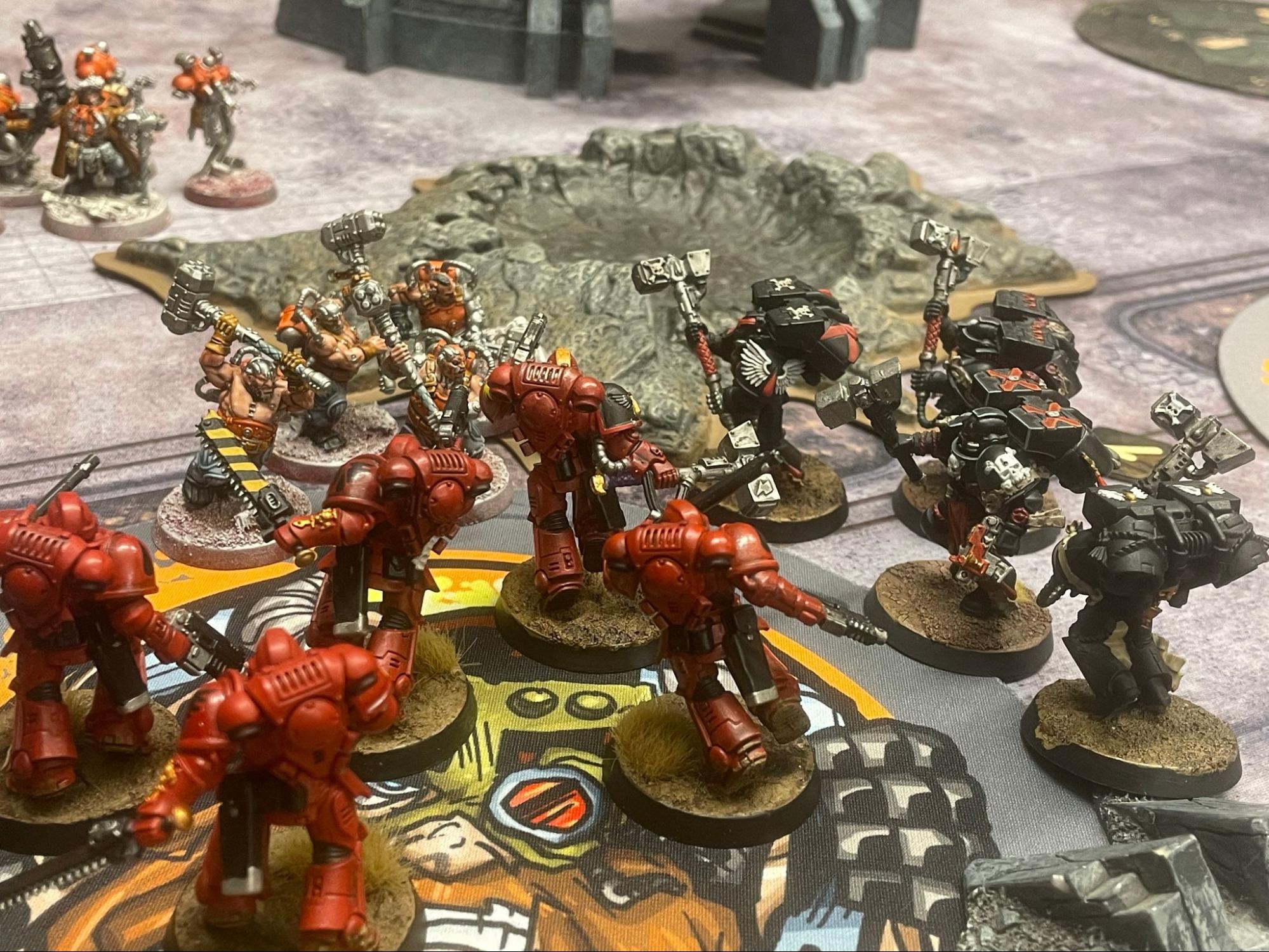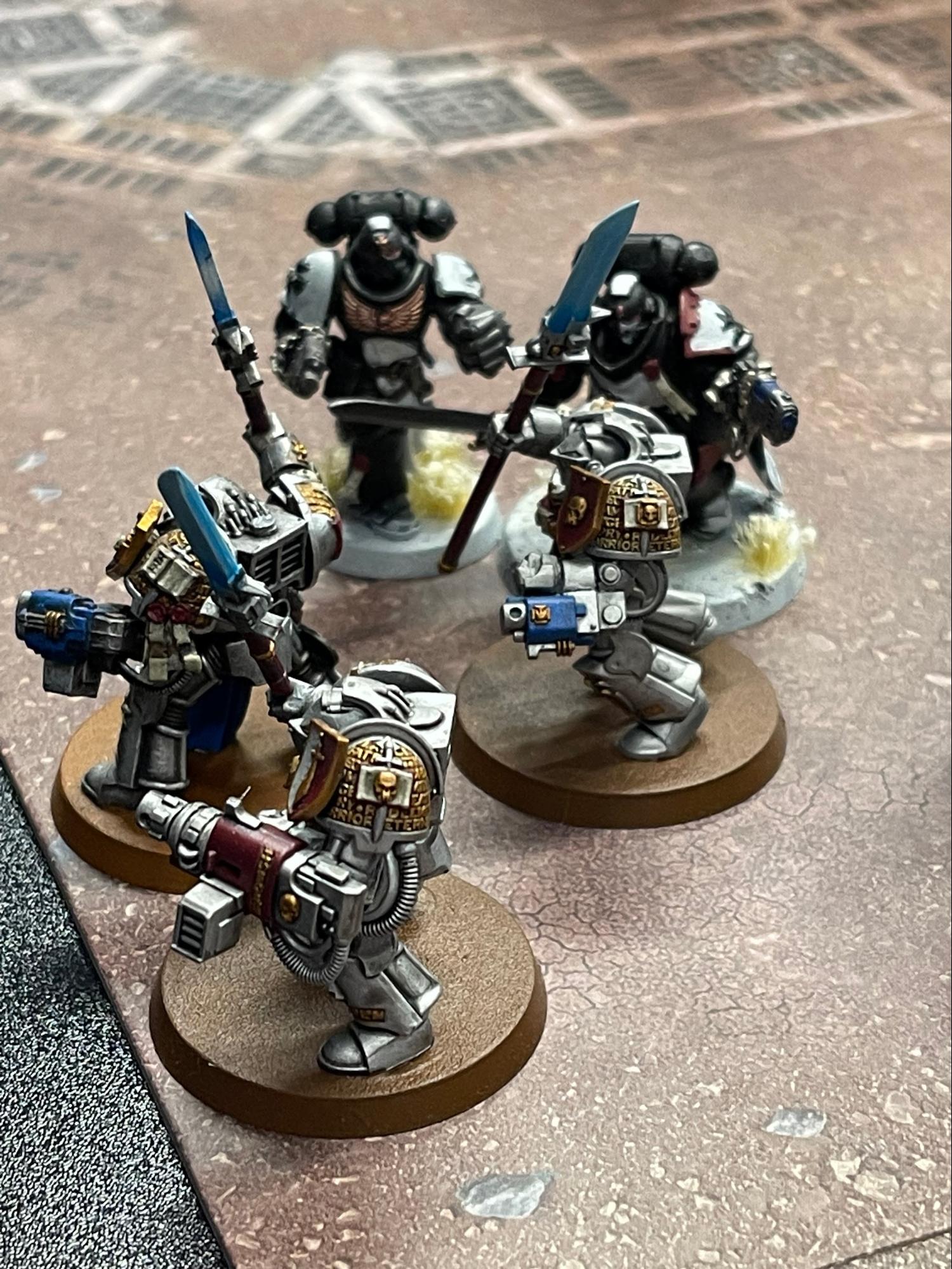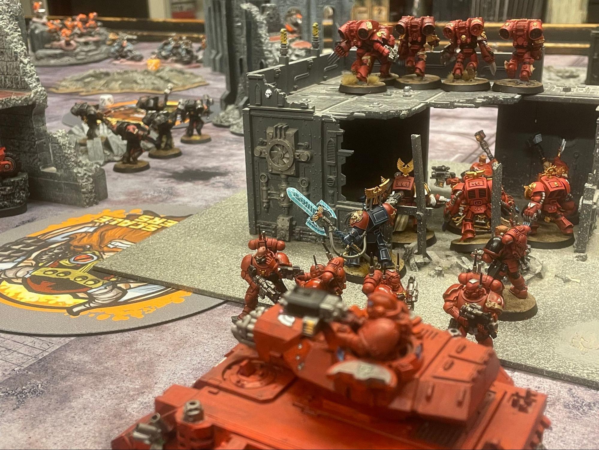 Grey Knight Terminators battle the Black Templars on Agrippas desert.