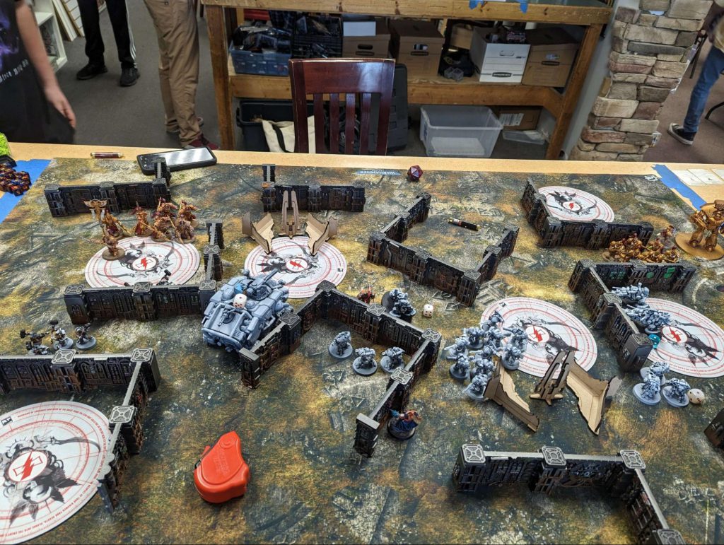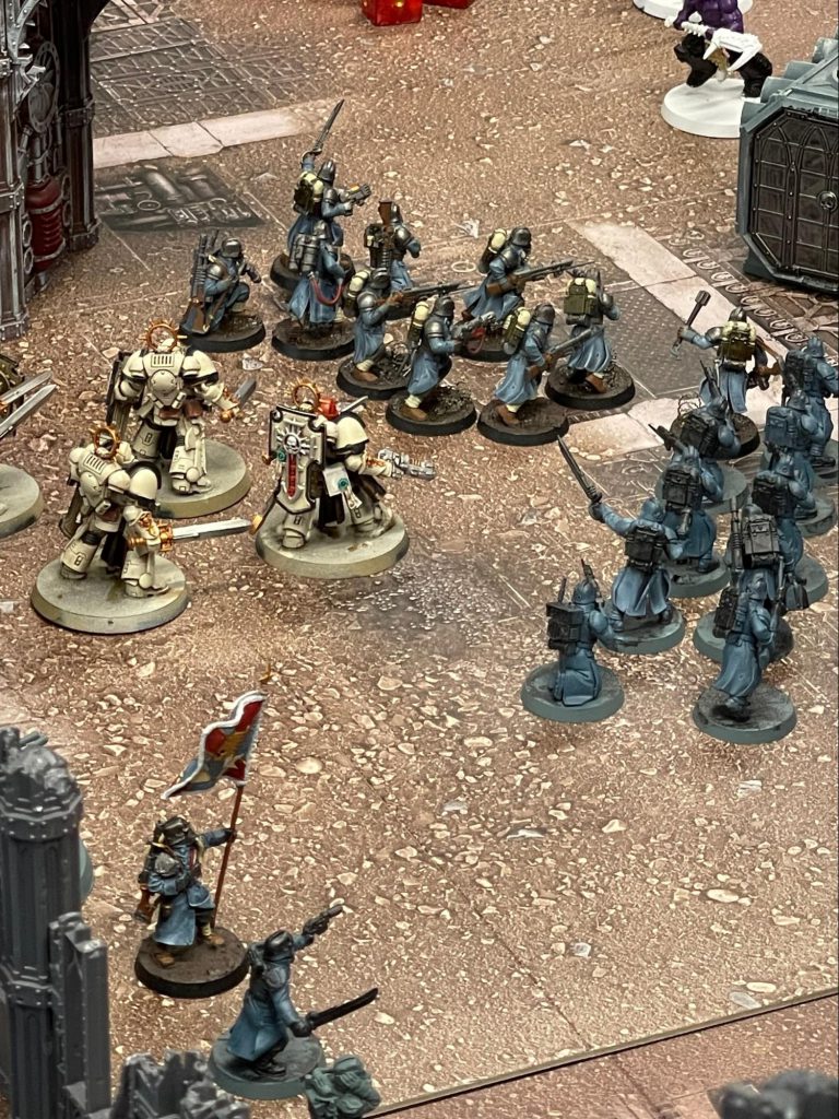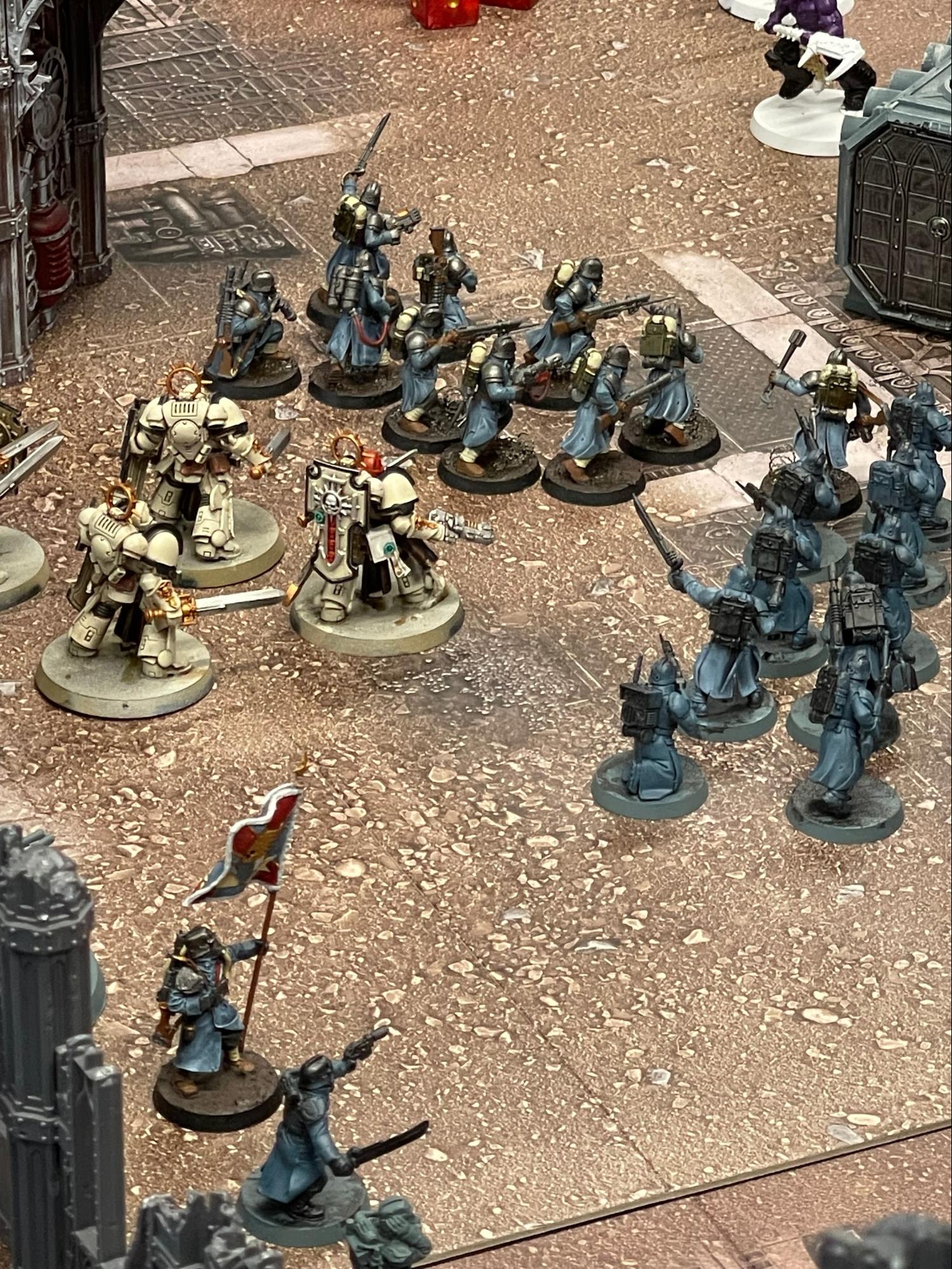 Grey Knight Terminators battle the Black Templars on Agrippas desert.